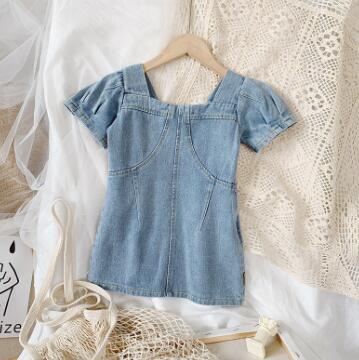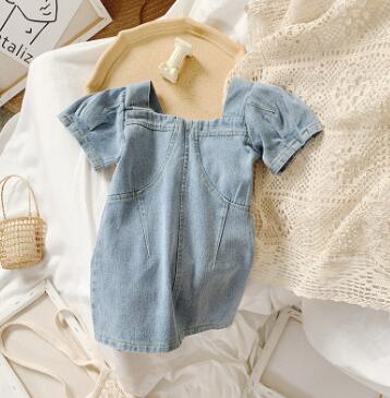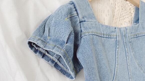 可愛いフリル袖が特徴的なキッズ用デニムロングワンピースです。