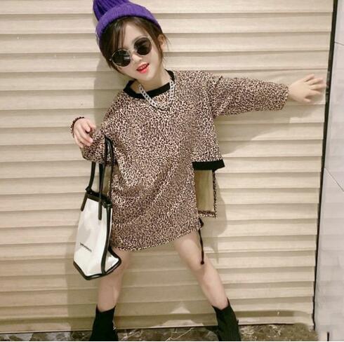 おしゃれな豹柄デザインのキッズ用ロングワンピースです。