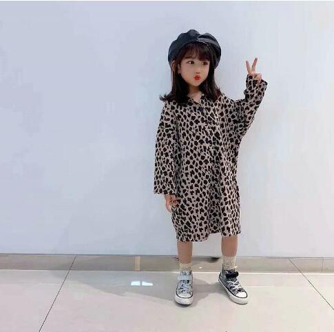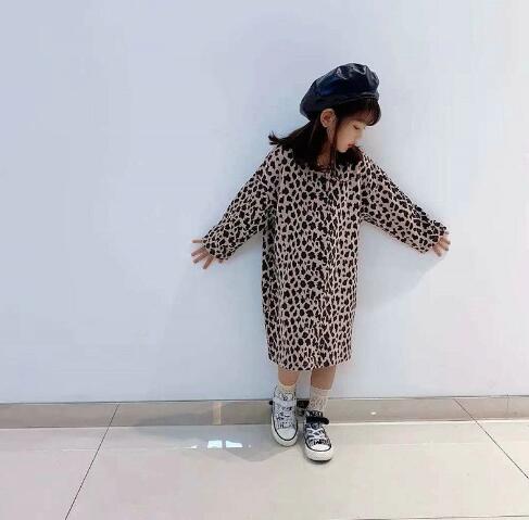 おしゃれなヒョウ柄が印象的なキッズ向けロングワンピースです。