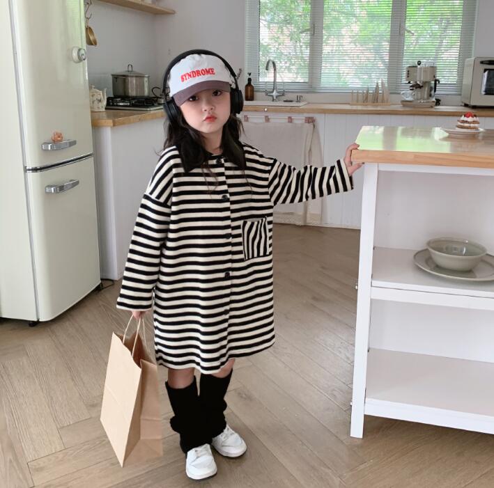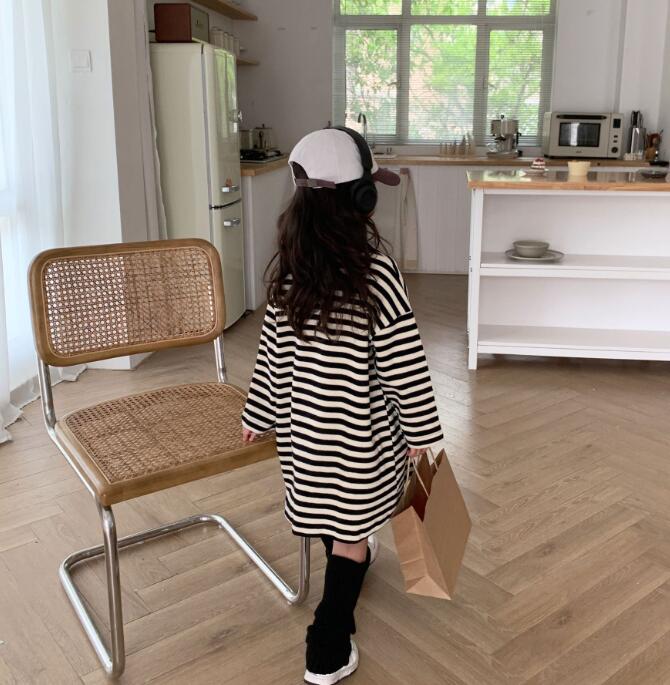 可愛いキッズ用のボーダー柄ロングワンピースです。