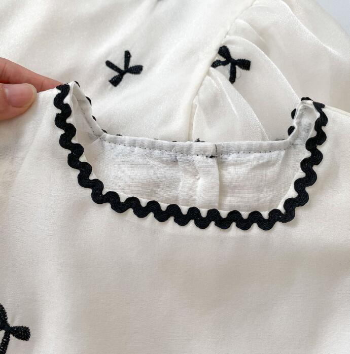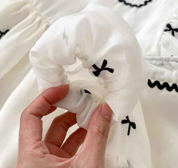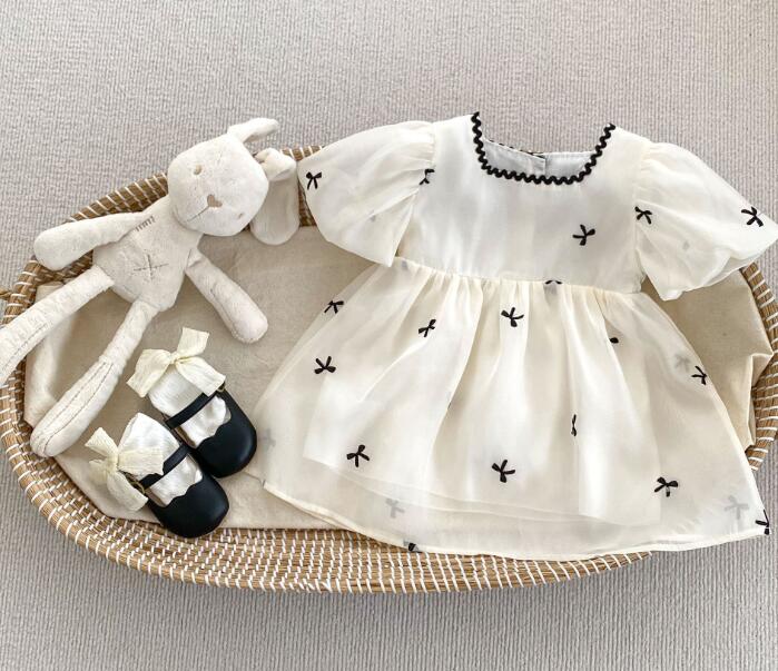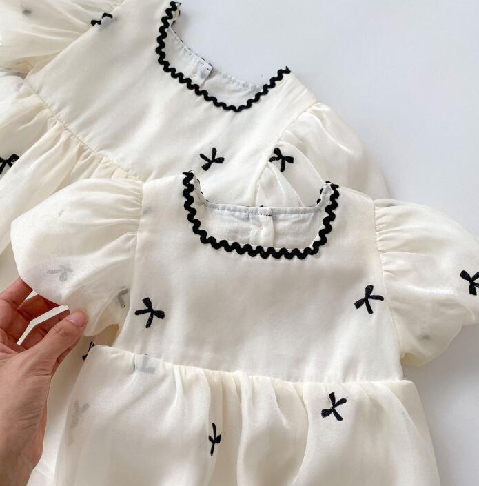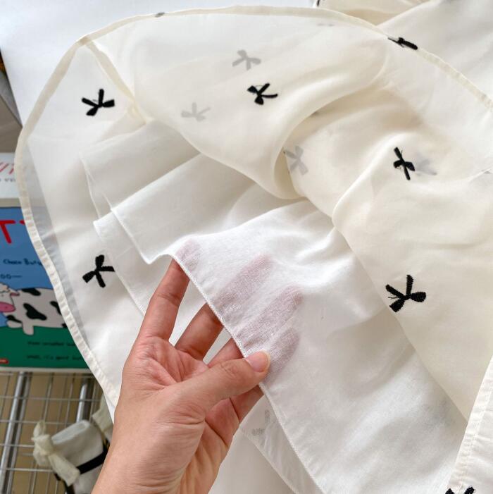 上品な花柄刺繍が散りばめられたキッズ用の可愛らしいワンピースです。