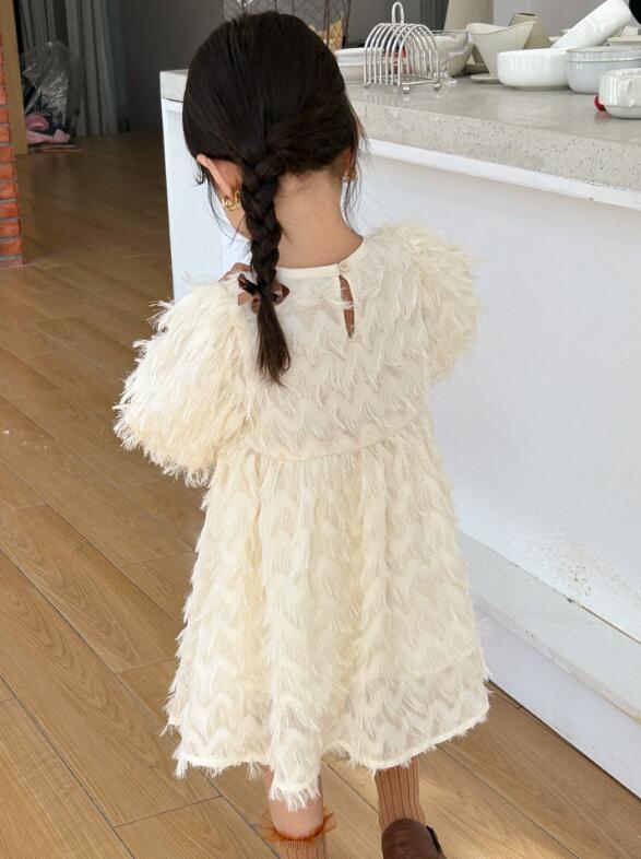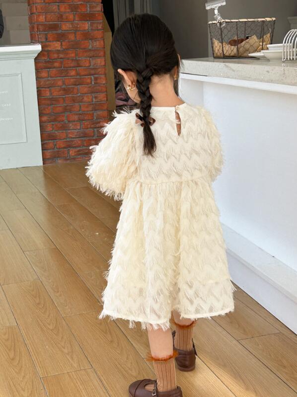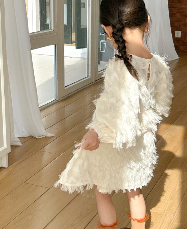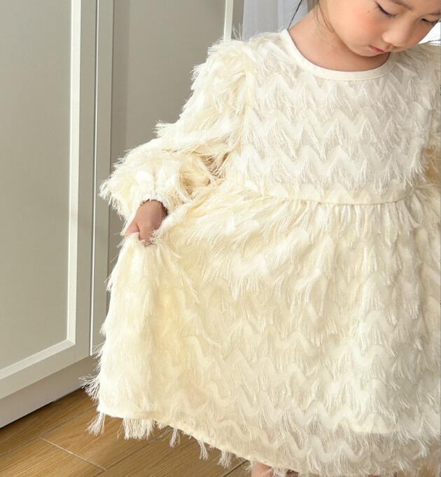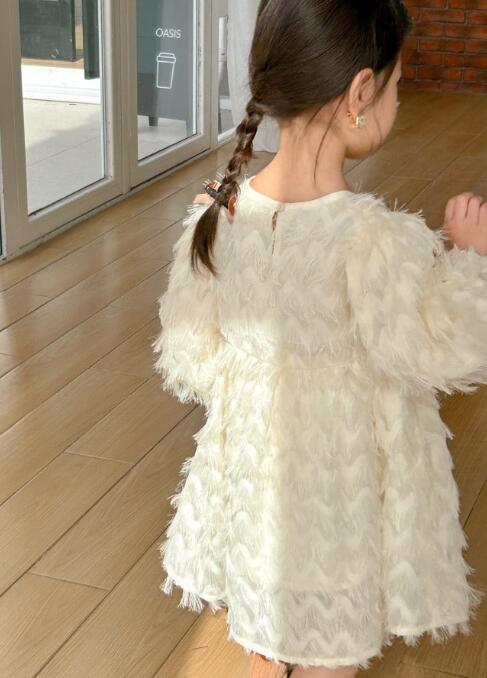 キッズ用の上品なふわふわファー素材を使用したロングワンピースです。