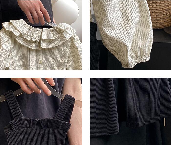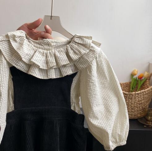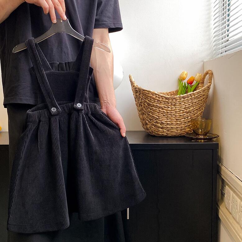 可愛らしいフリル襟が特徴的なキッズ向けサロペットワンピースです。