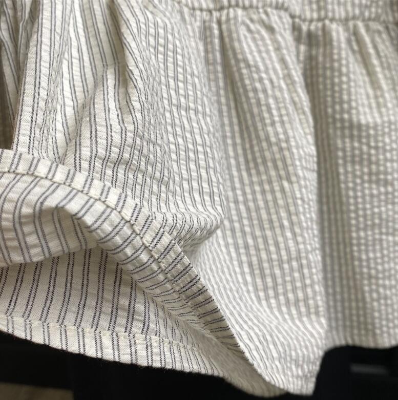 上品な白色ブラウスと組み合わせることで、ロングワンピースのような優雅な印象に。