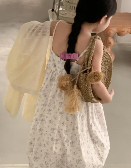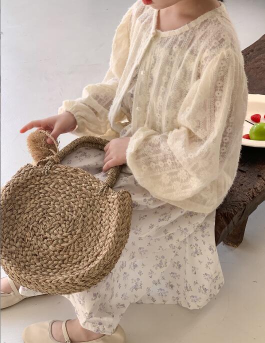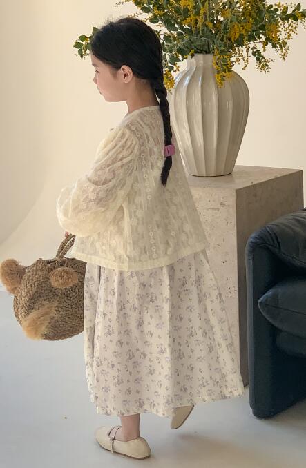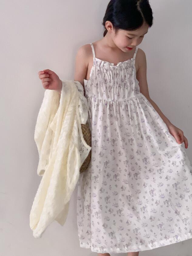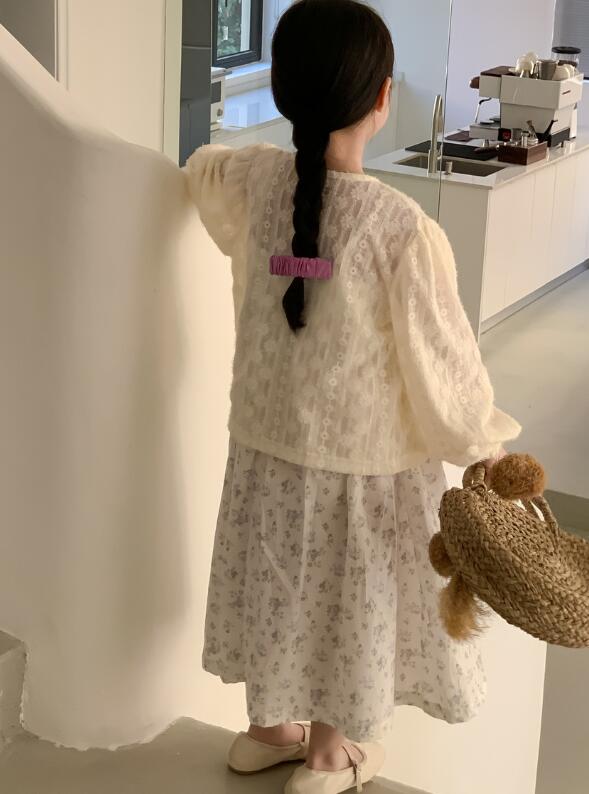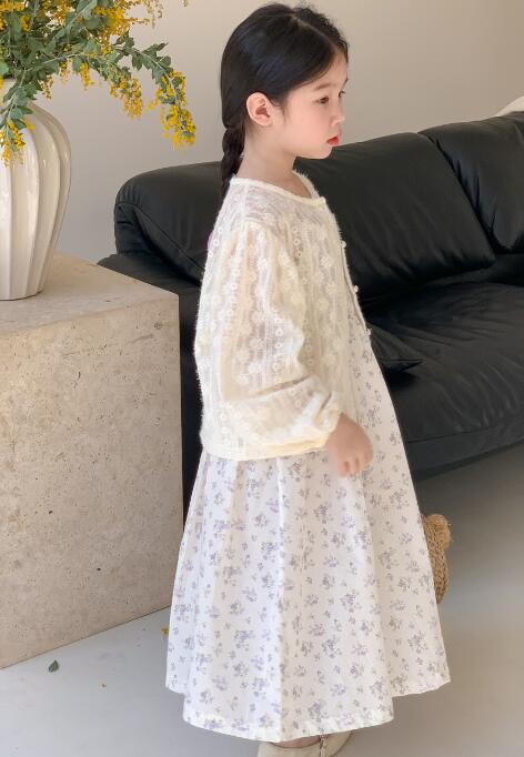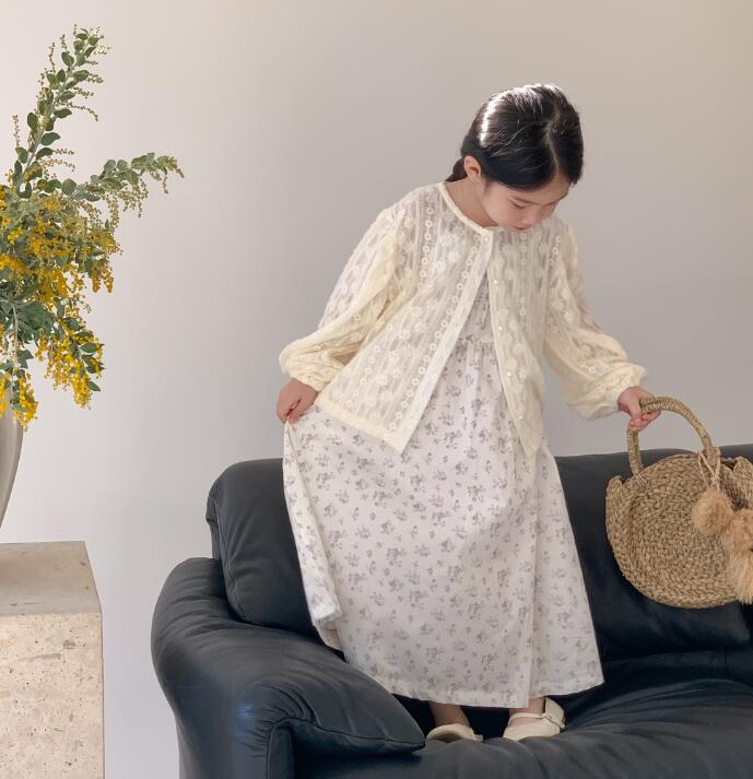 可愛い小花柄のキッズ用ロングワンピースと羽織りカーディガンのセット商品です。
