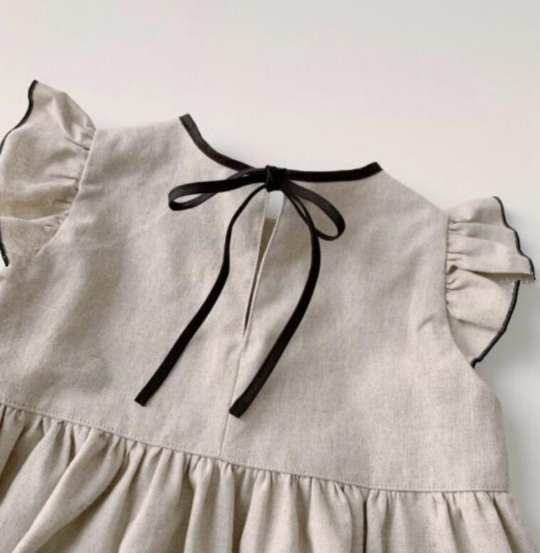 フリル袖と丸襟がとても愛らしく、普段着からお出かけまで幅広く活躍します。