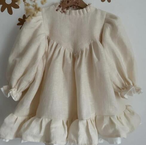 袖口と裾にあしらった上品なフリルが女の子らしさを演出します。