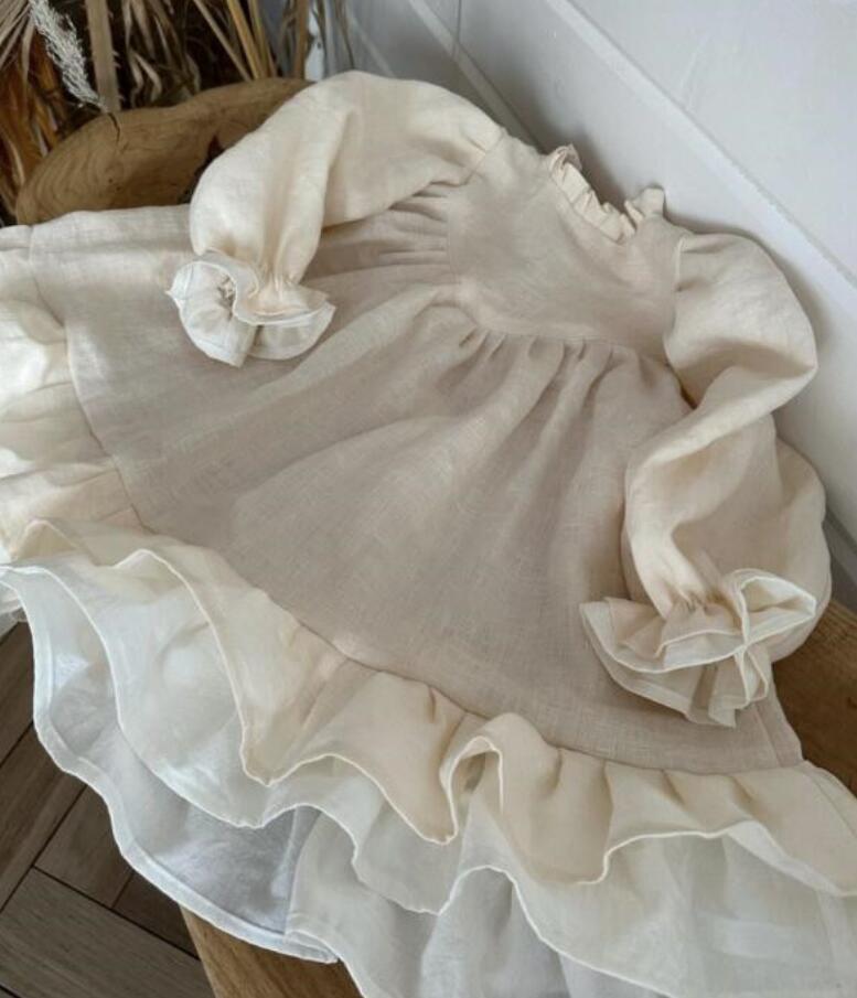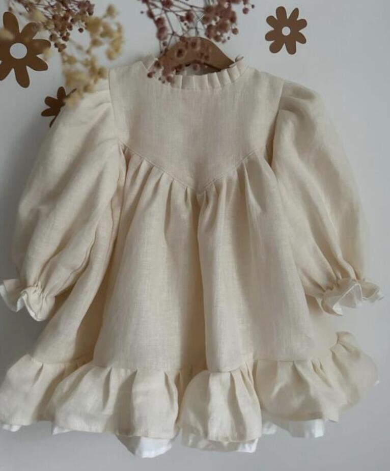 春らしいナチュラルカラーのキッズ向けロングワンピースです。
