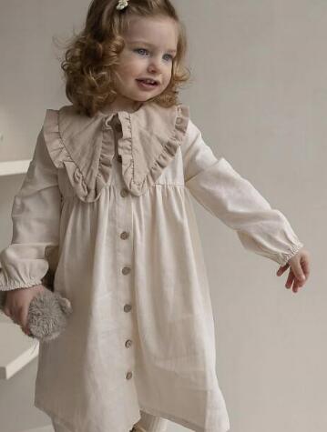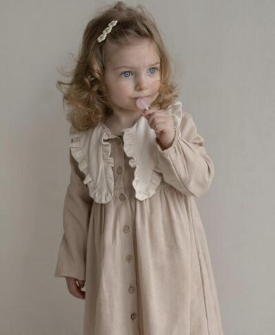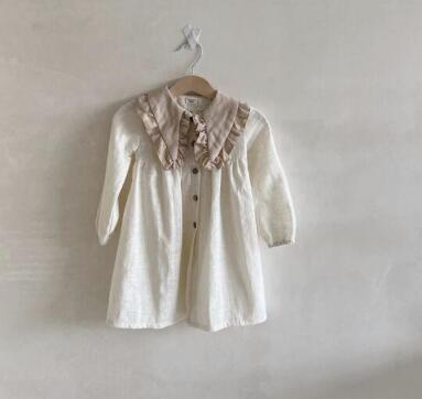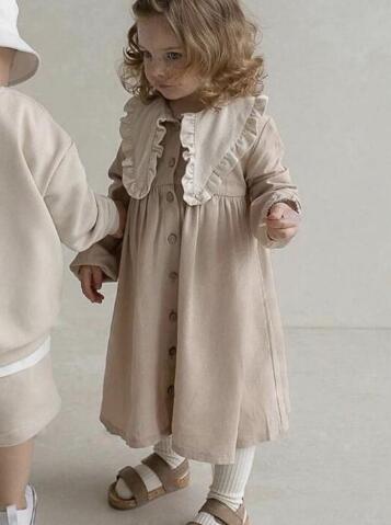可愛らしいフリル襟が特徴のキッズ向けロングワンピースです。