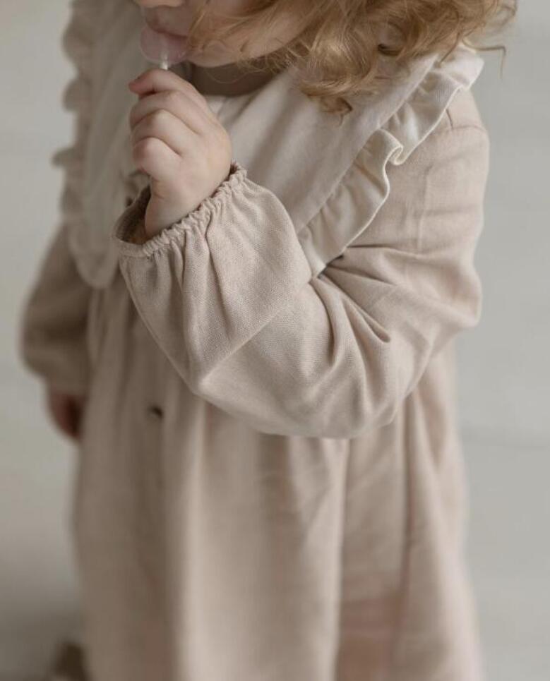 ボタン留めデザインで着脱も簡単、普段使いから特別な日まで幅広くお使いいただけます。
