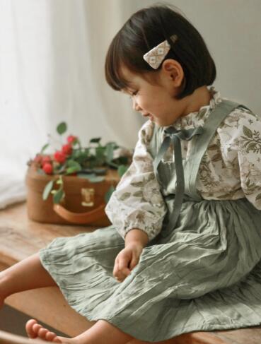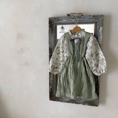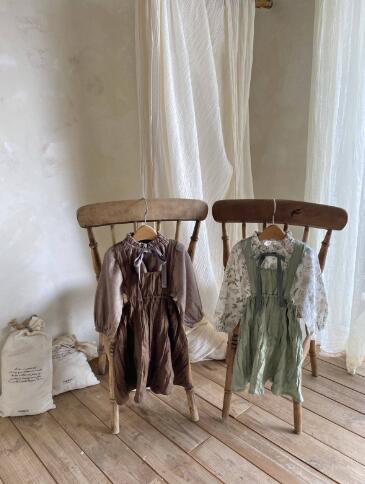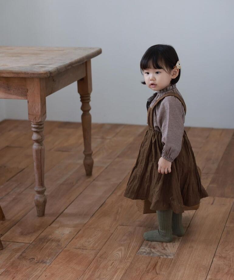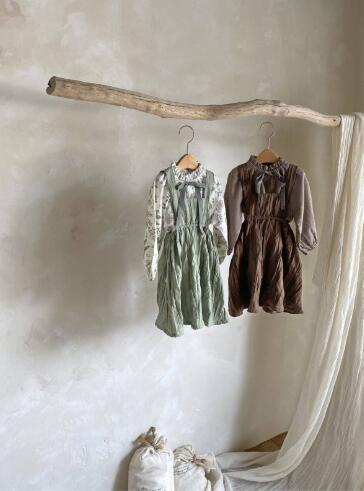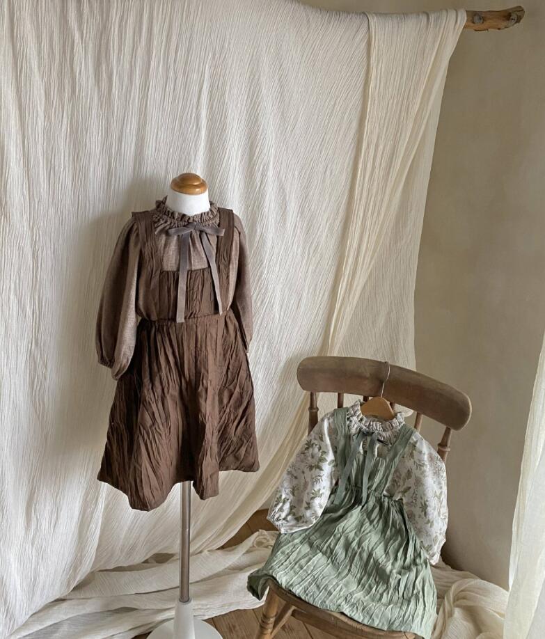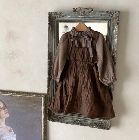 上品なフリル襟とギャザーが魅力的なキッズ用長袖ワンピースです。