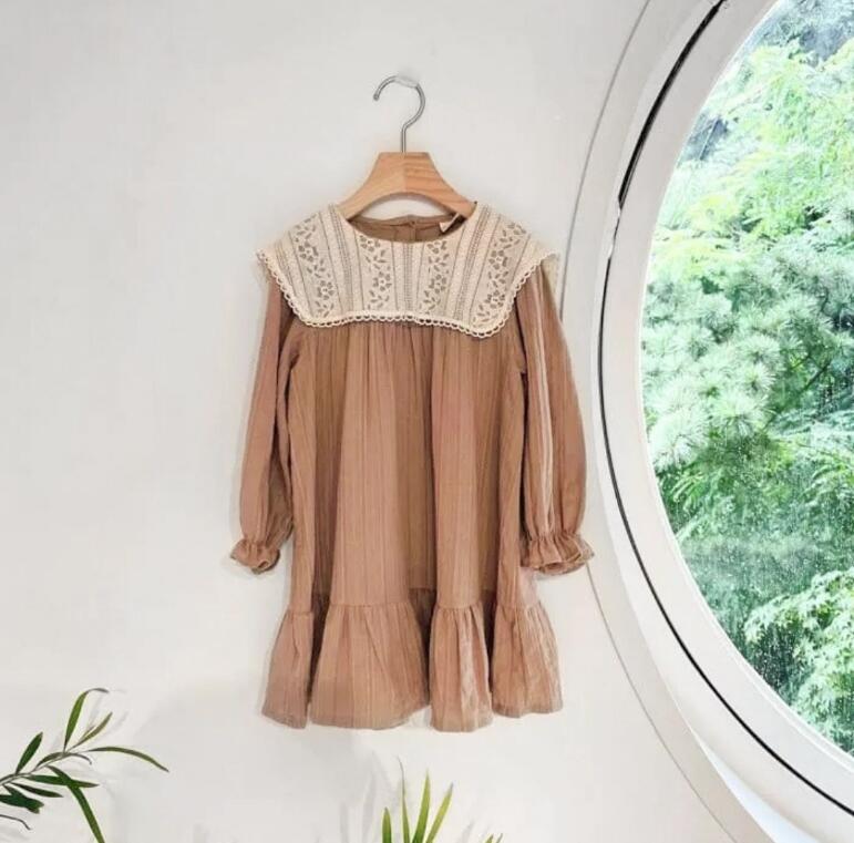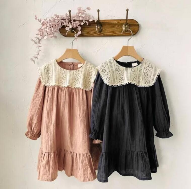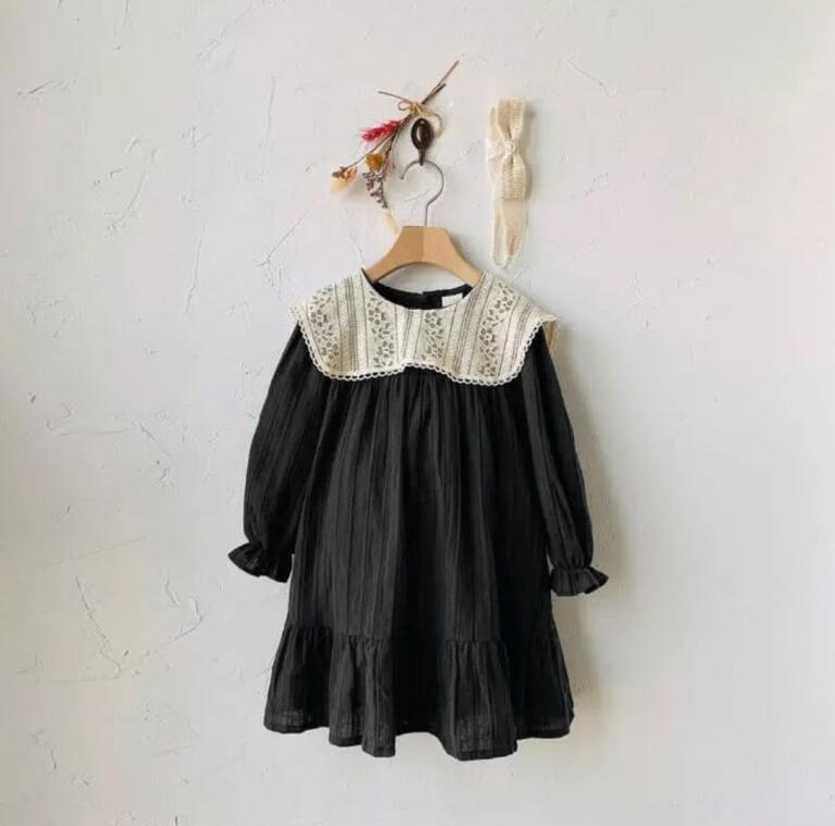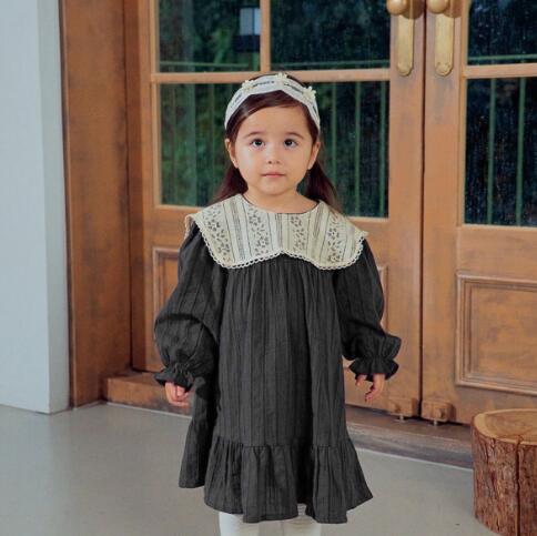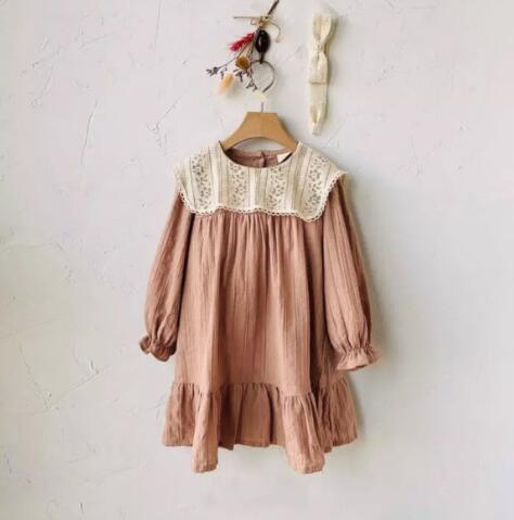 上品なレース襟が可愛らしいキッズ用ロングワンピース。