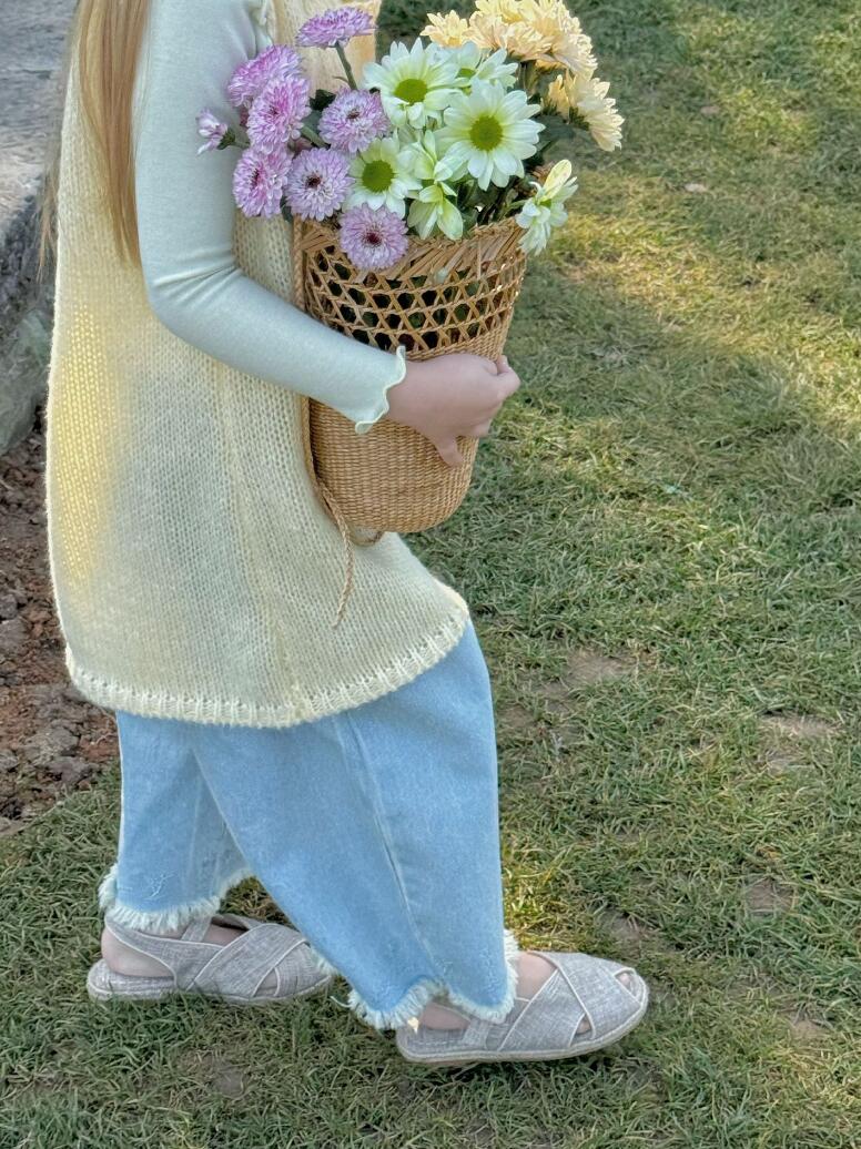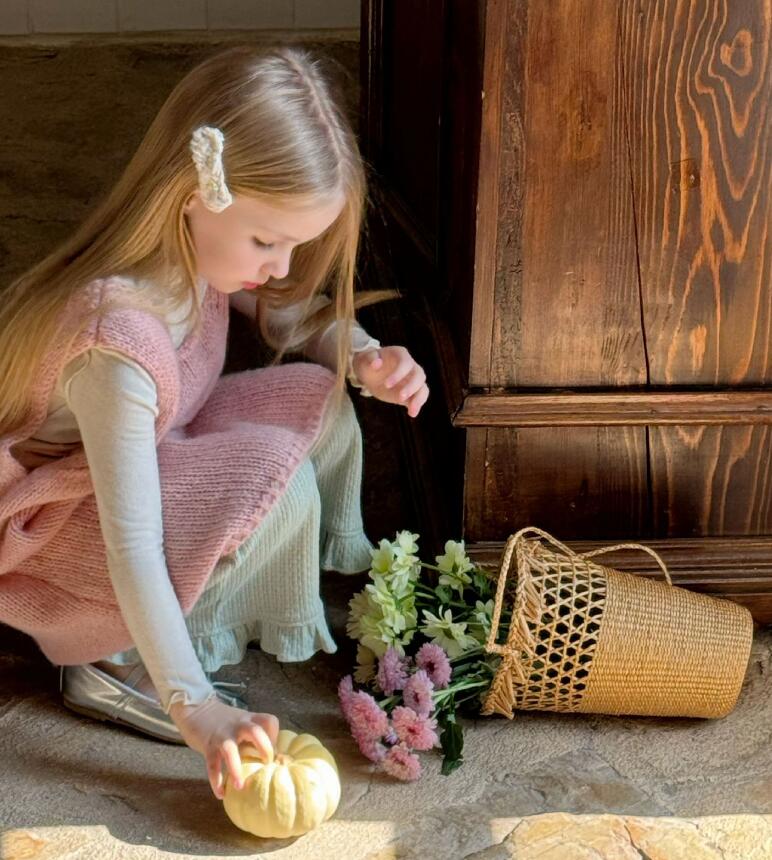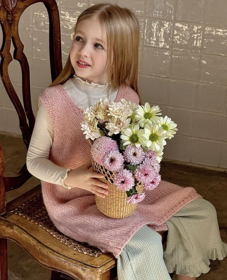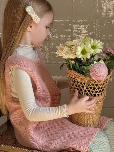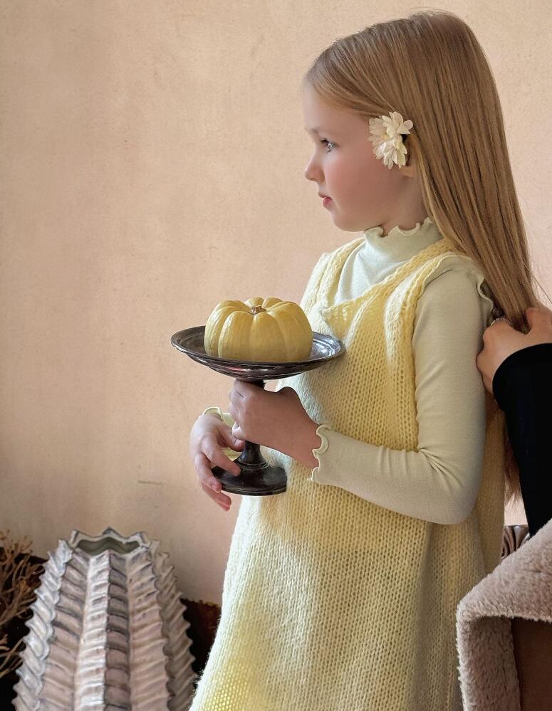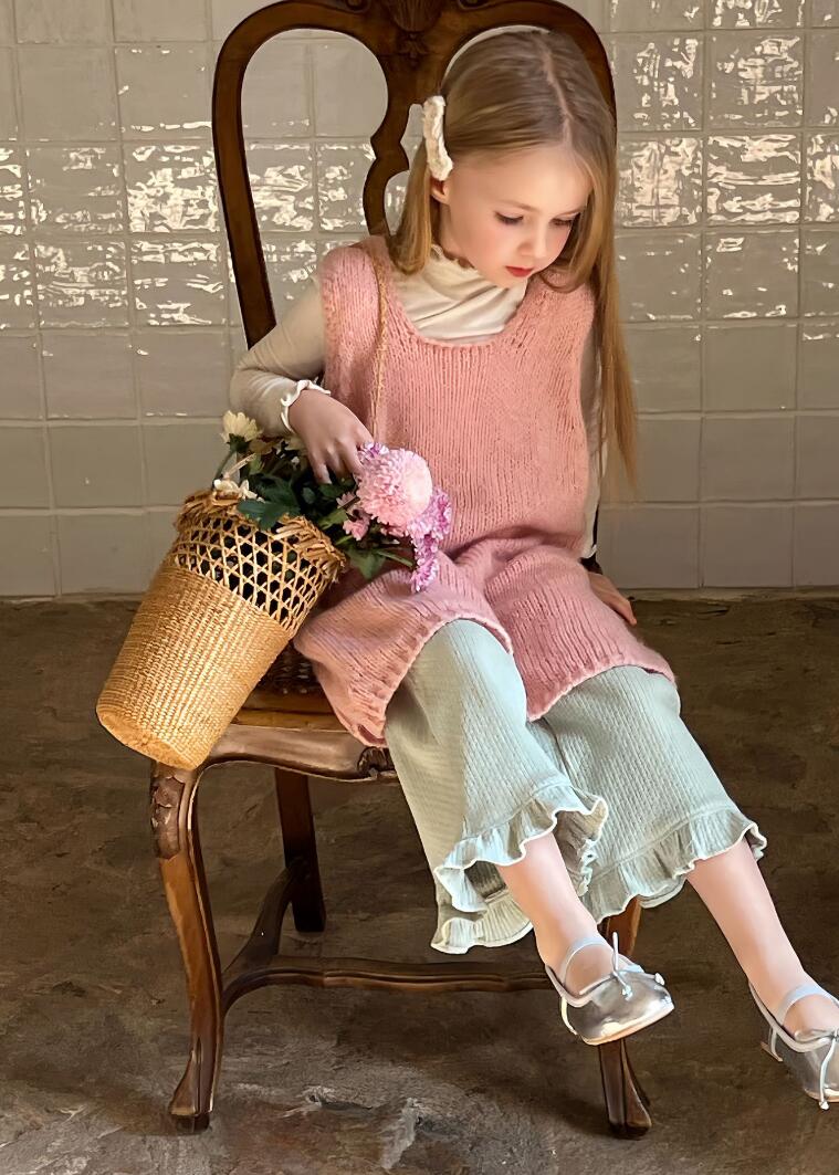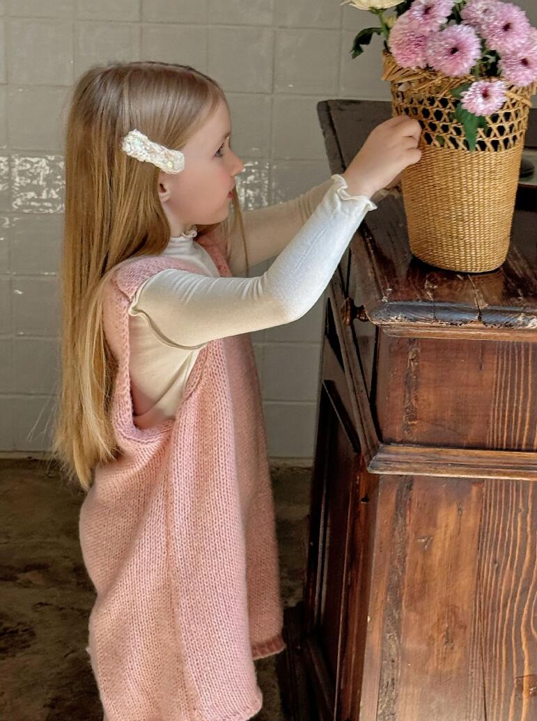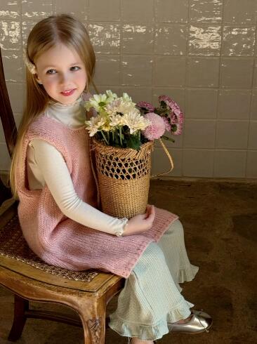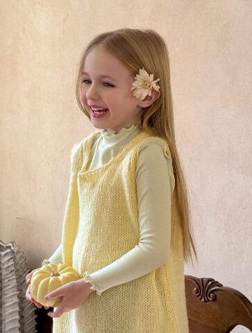 柔らかなニット素材で作られたノースリーブデザインが、お子様の動きやすさと可愛らしさを両立します。