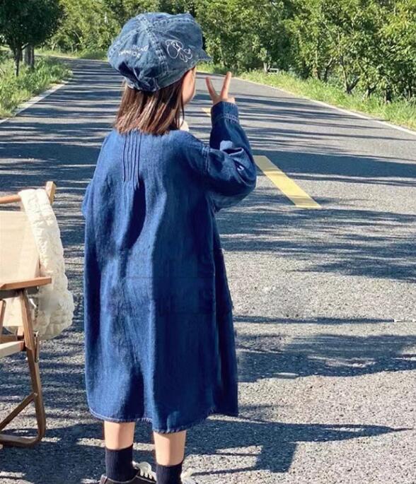 おしゃれなキッズ向けのデニム生地を使用したロングワンピースです。