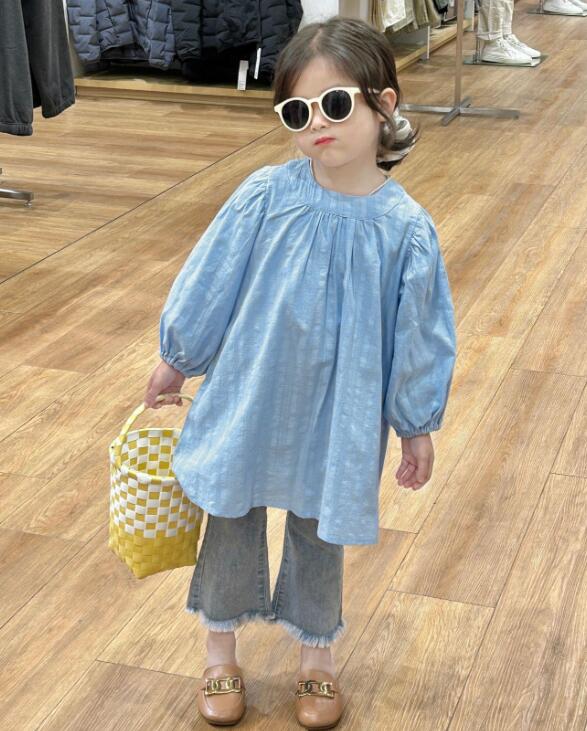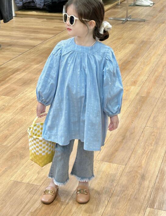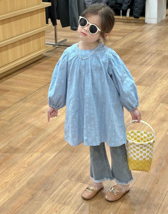 おしゃれなキッズ向けデニムズボンとワンピースの2点セットです。