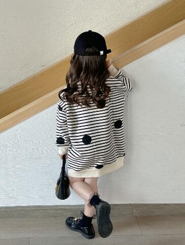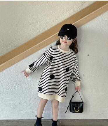 おしゃれなボーダー柄が可愛いキッズ用ロングワンピースです。