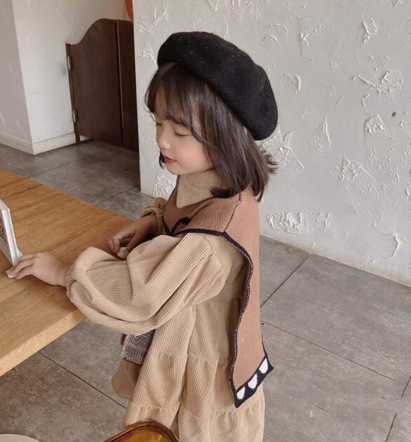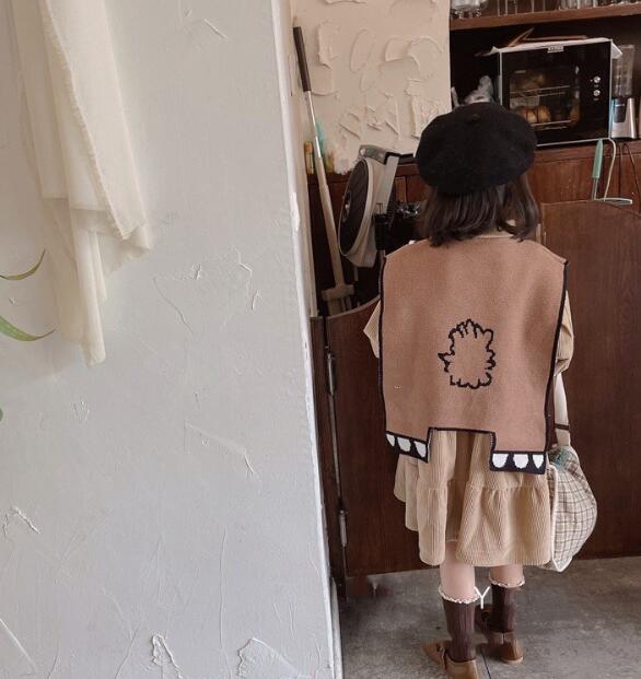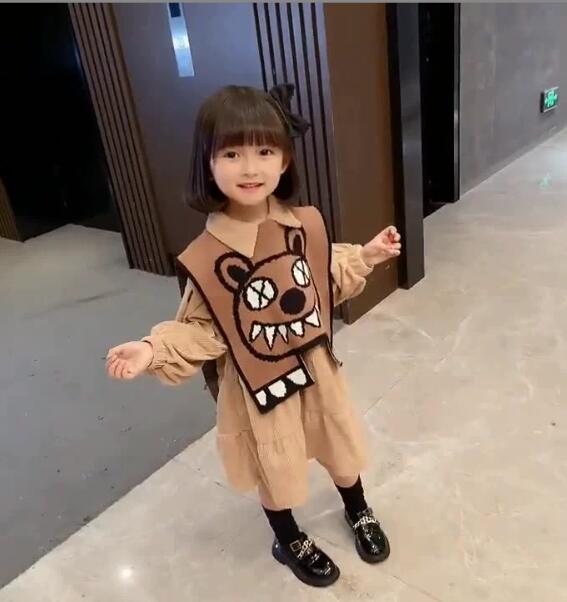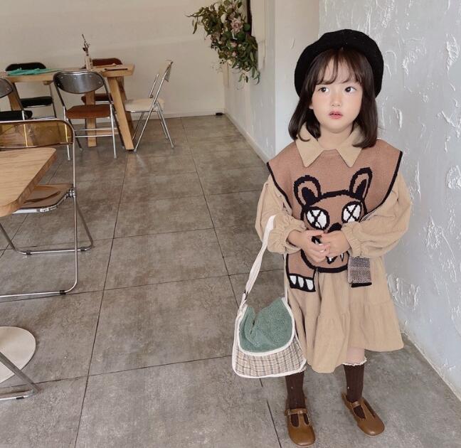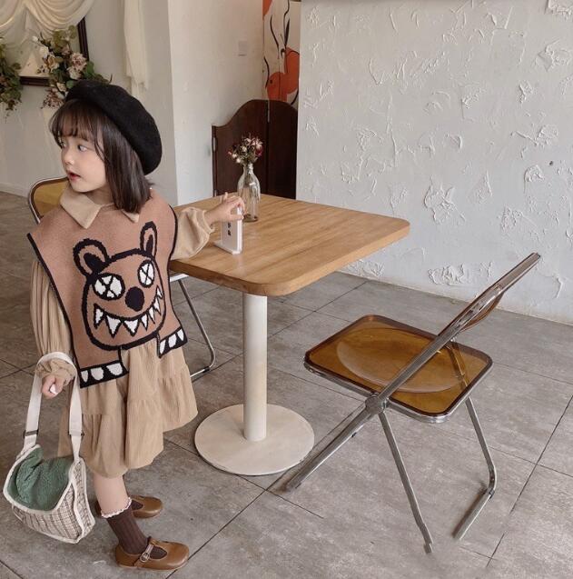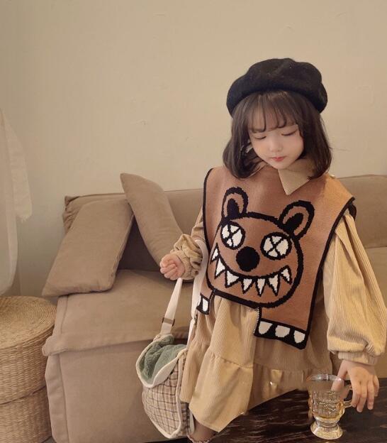 可愛いくま柄のニットベストとロングワンピースの二点セット商品です。 キッズ向けのおしゃれなデザインで、ベストとワンピースは分けて着用することも可能です。 柔らかな素材で着心地も抜群、普段使いからお出かけまで幅広くご活用いただけます。