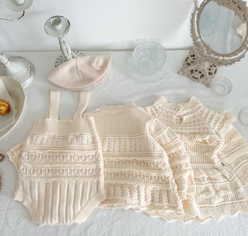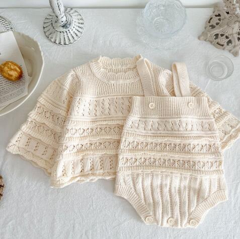上品な編み込み柄が魅力的なベビー服セットです。 ロングワンピース風デザインで特別な日にもぴったり。 柔らかな素材でベビーの肌に優しく、着心地抜群。 66-100センチ対応で長くお使いいただけます。