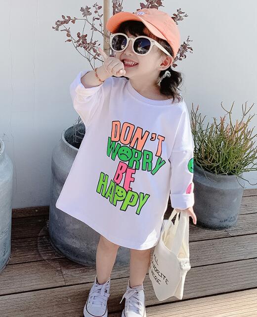可愛いカラフル文字がプリントされたキッズ用の長袖ワンピースです。
