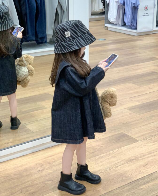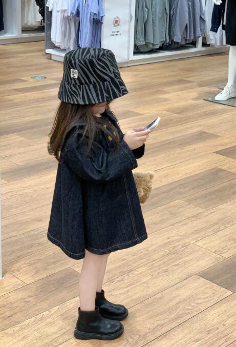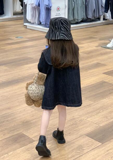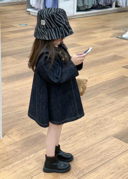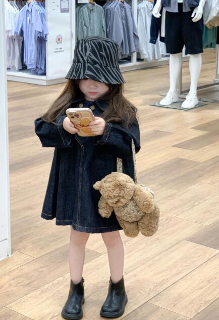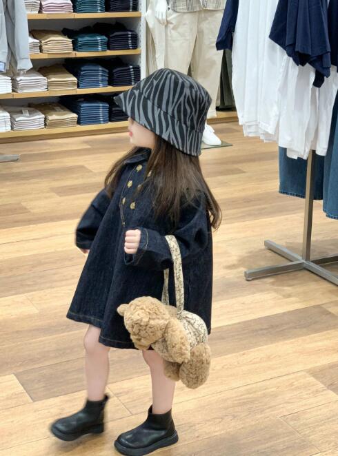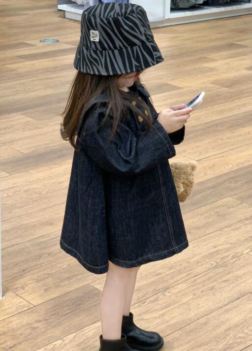可愛らしいキッズ向けデニム素材の長袖ワンピースです。