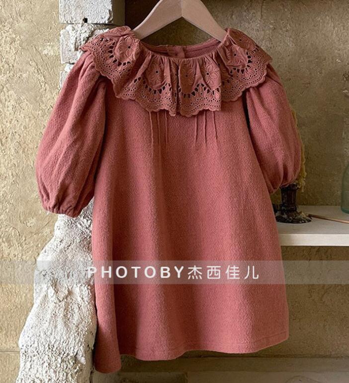 可愛らしい刺繍襟が特徴的なキッズ向けロングワンピースです。