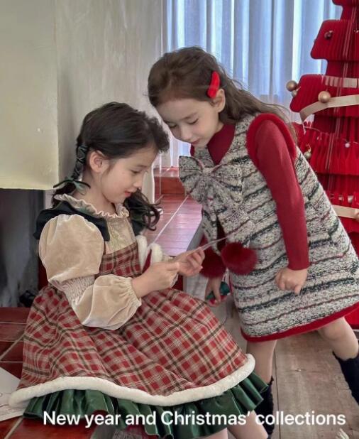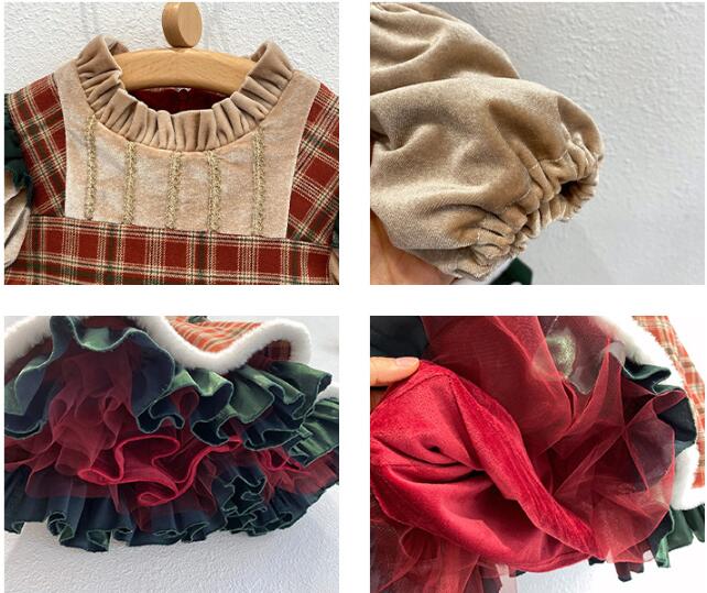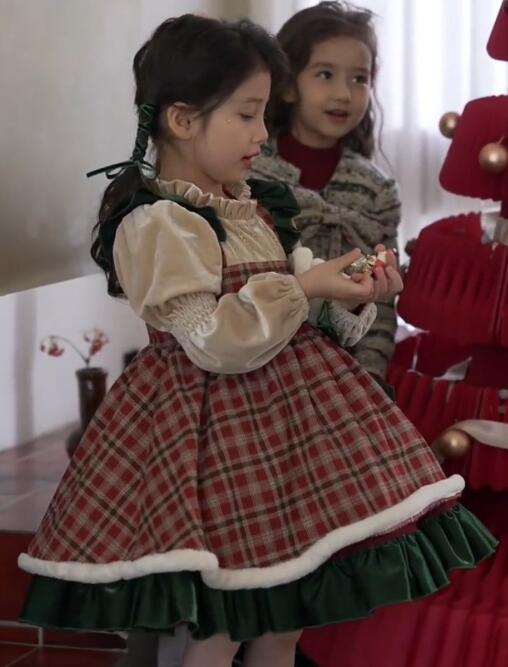 可愛いキッズ向けのクリスマス風チェック柄ロングワンピースです。 上品なチェック模様とフリル装飾が特徴的で、特別な日のお出かけにぴったり。 100から140センチまでのサイズ展開で、お子様の成長に合わせてお選びいただけます。