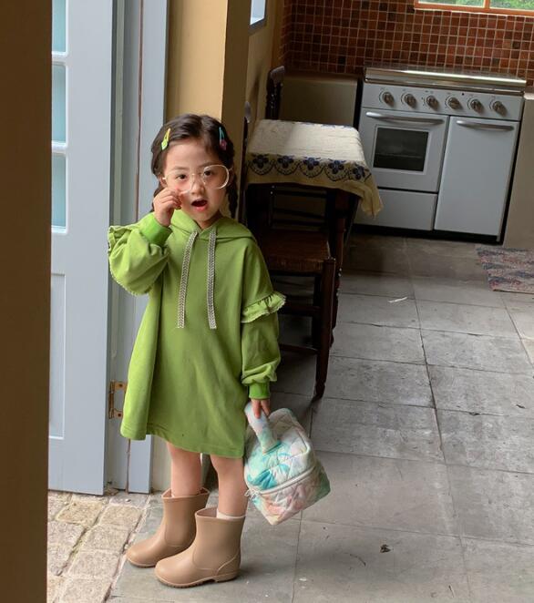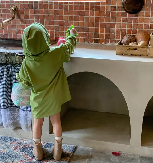 可愛いキッズ用のフード付きロングワンピースです。