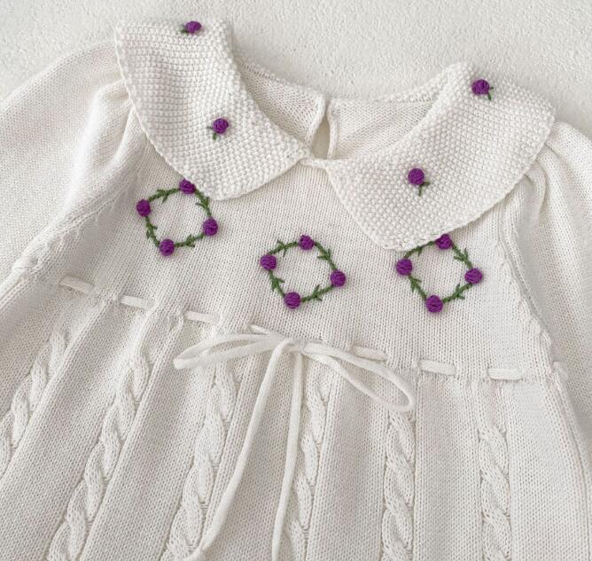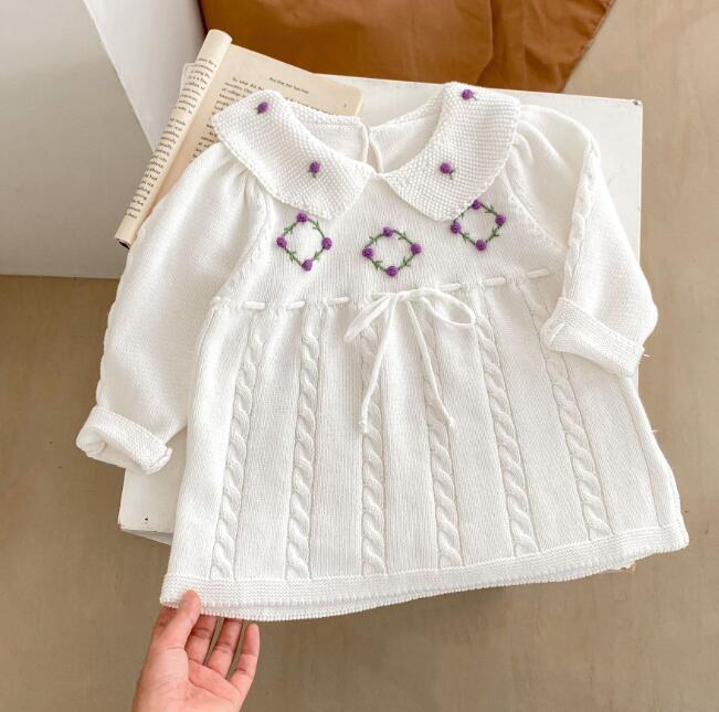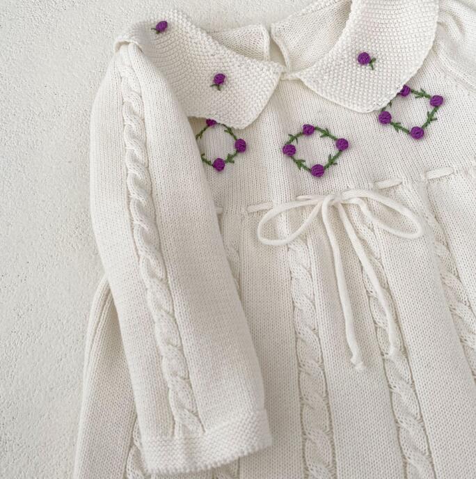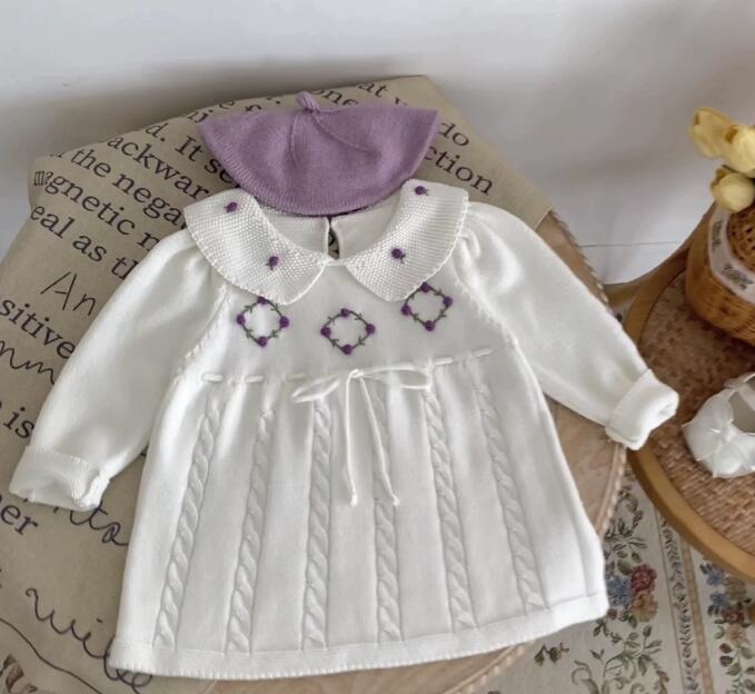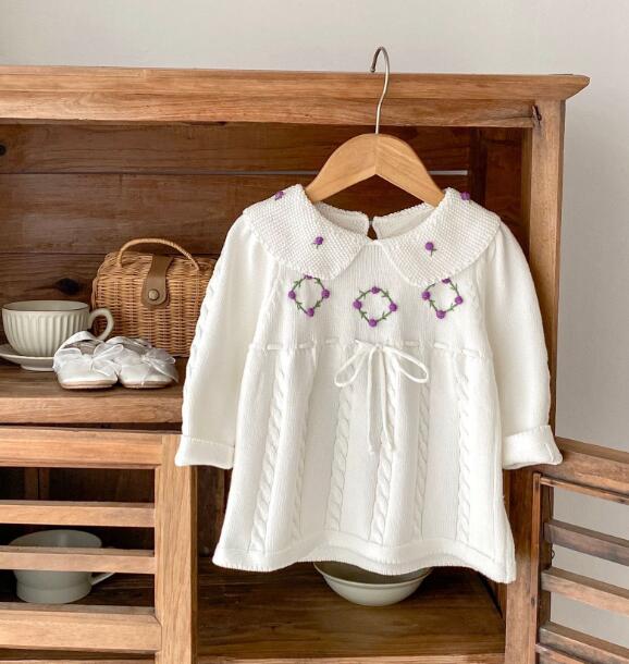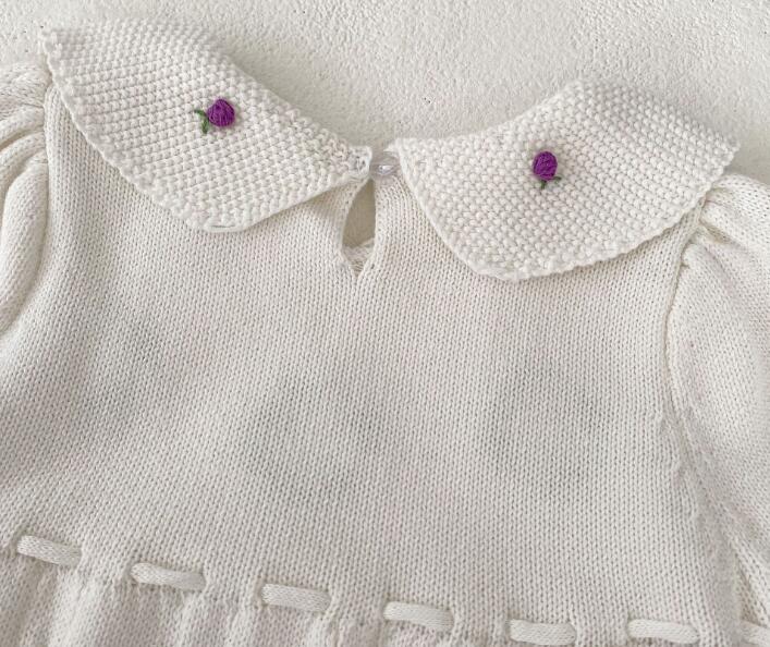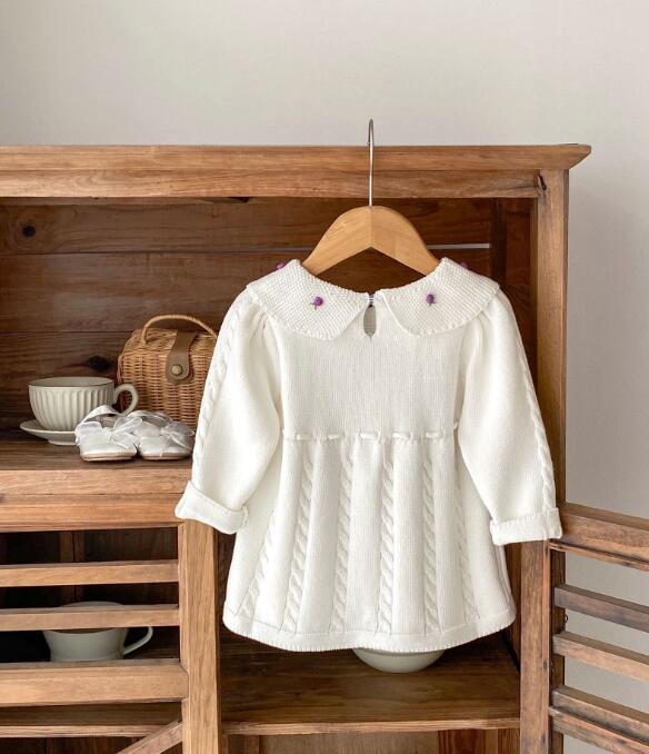 可愛らしい丸襟デザインのキッズ向けニットワンピースです。