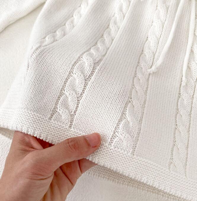 ケーブル編みの質感が温かみを演出し、普段着からお出かけまで幅広く活躍します。