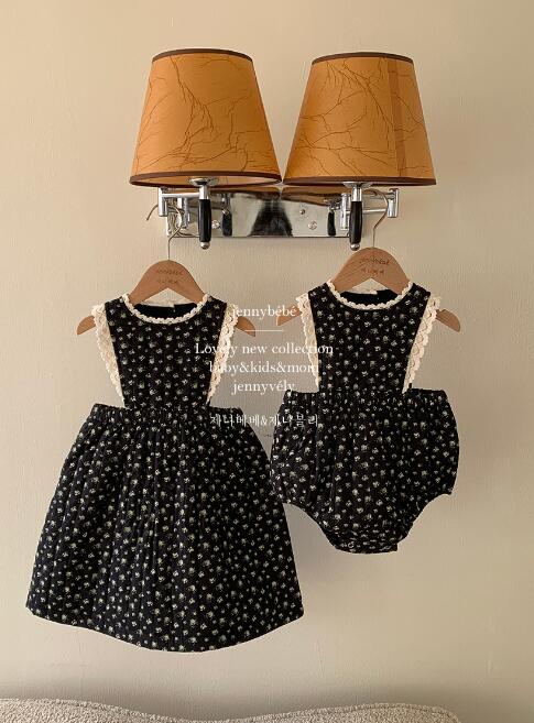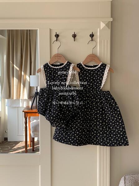 黒地に白い星模様が散りばめられたロングワンピースで、袖なしデザインが涼しげで上品な印象を与えます。