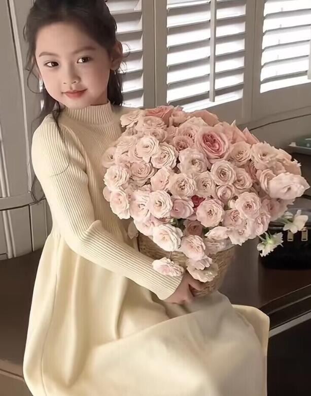 お嬢様らしい上品な印象を演出するキッズ用編み地ワンピースです。