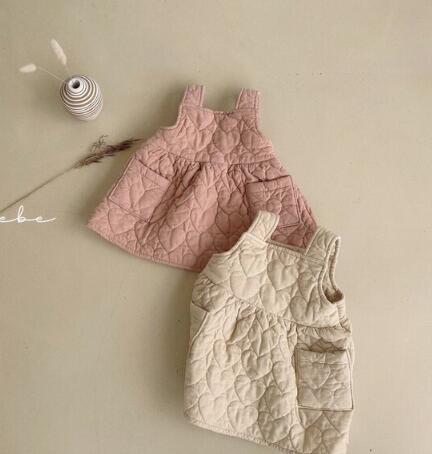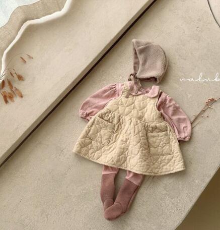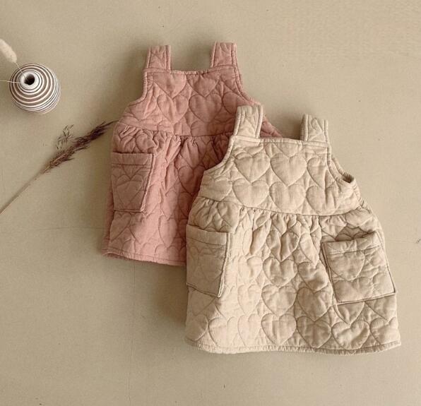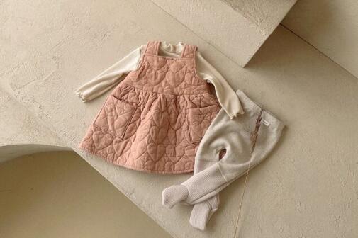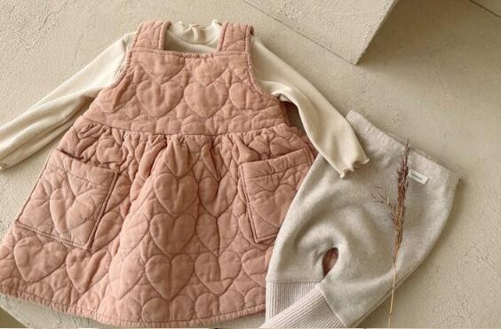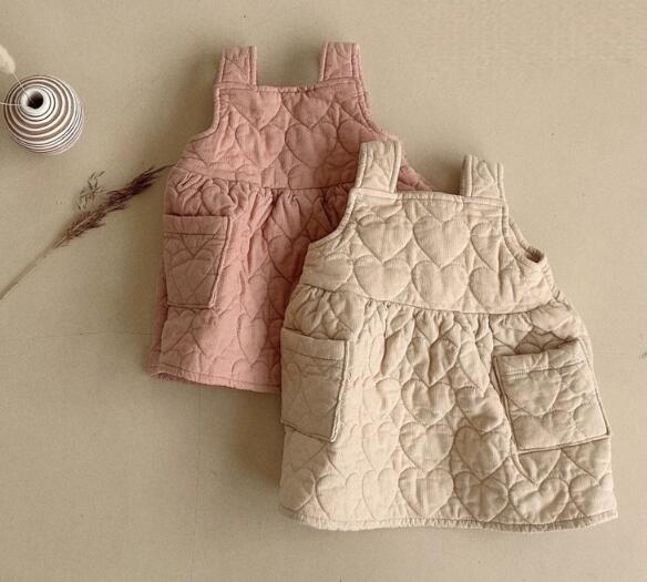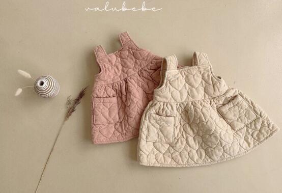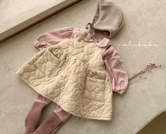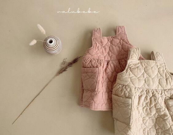 キッズ向けの可愛らしい中綿キルティングサロペットワンピースです。