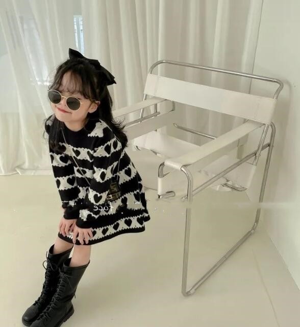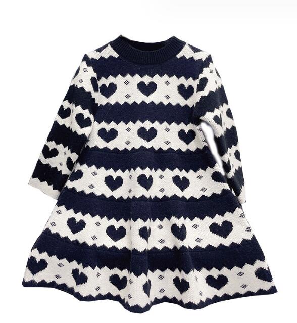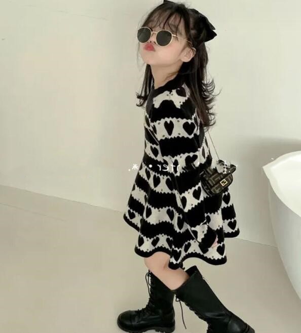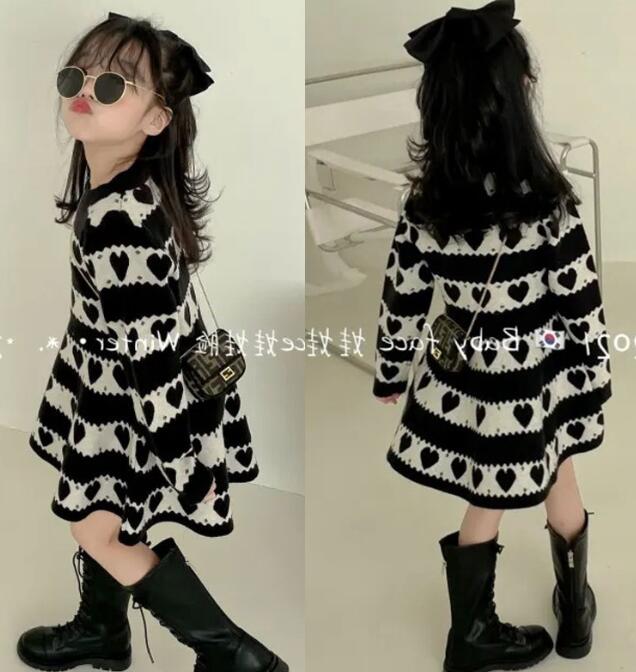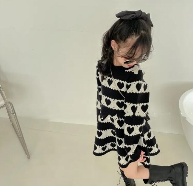 可愛いハート柄が印象的なキッズ向けニットロングワンピースです。