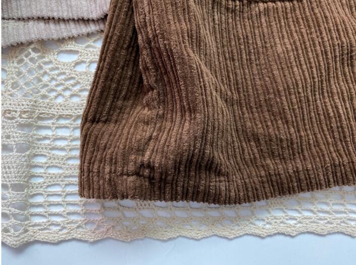 コーデュロイ素材のロングワンピースで、ベージュとブラウンの2色をご用意。