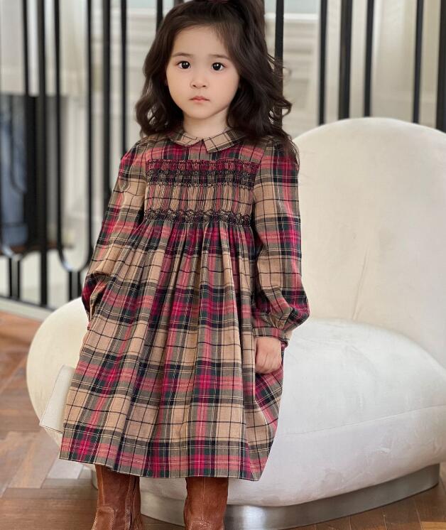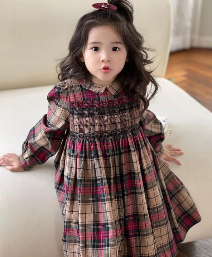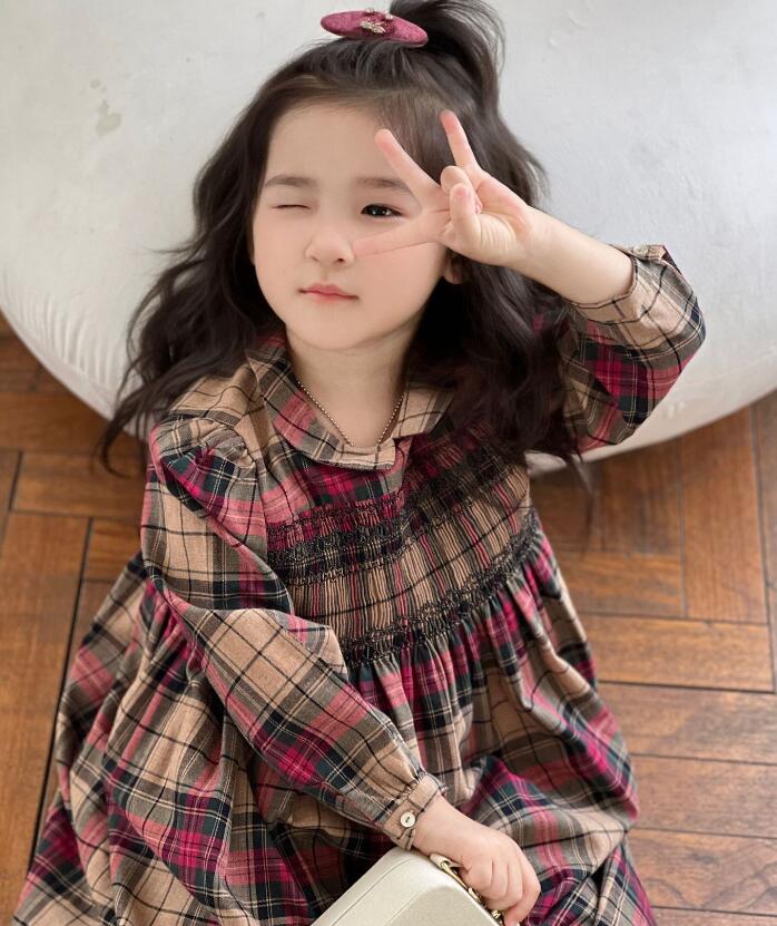 秋冬にぴったりのキッズ向けチェック柄ロングワンピースです。