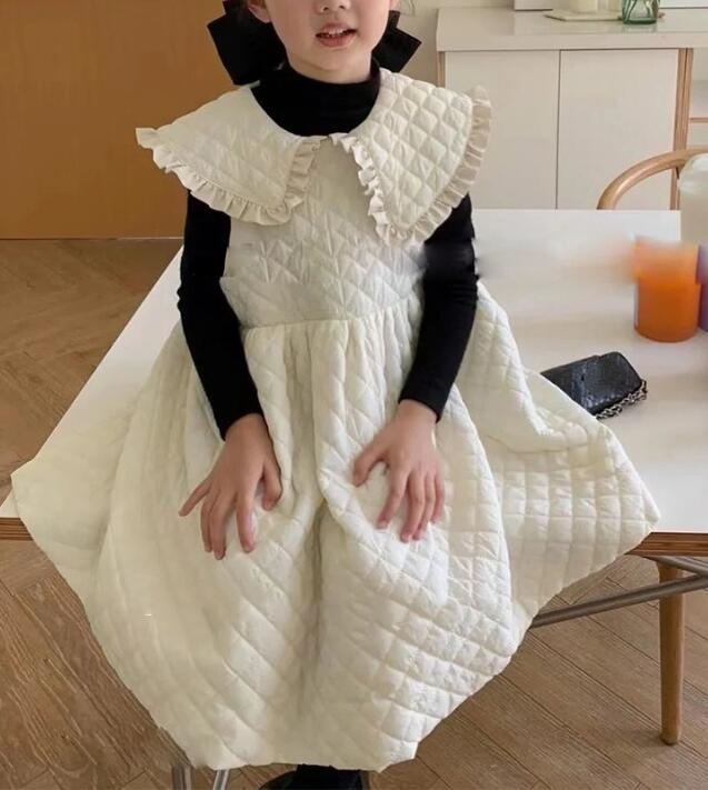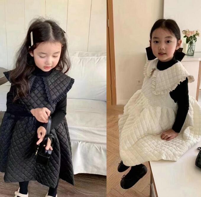 可愛いキッズ向けのキルティング素材を使用したベストとロングワンピースのセットアップです。