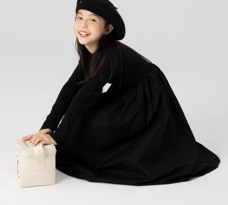 長袖デザインで秋冬にぴったり、ふんわりとしたシルエットがプリンセス気分を演出します。