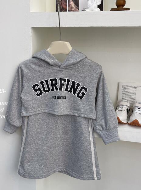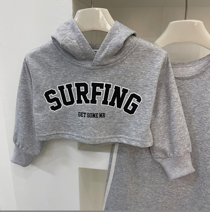 裏起毛素材で暖かく、ロングワンピースとショート丈パーカーの重ね着スタイルがおしゃれ