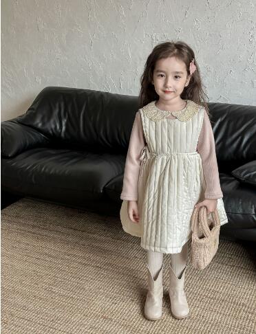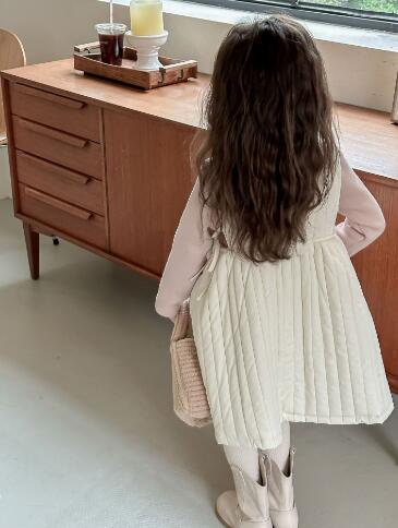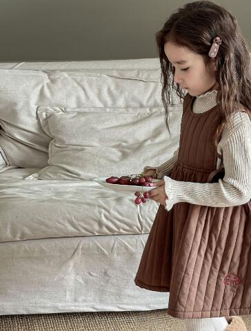 90cmから130cmまでのサイズ展開で、長めの丈感が可愛らしく、重ね着も楽しめる一枚です。