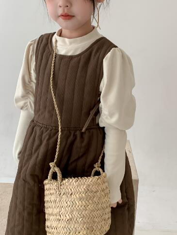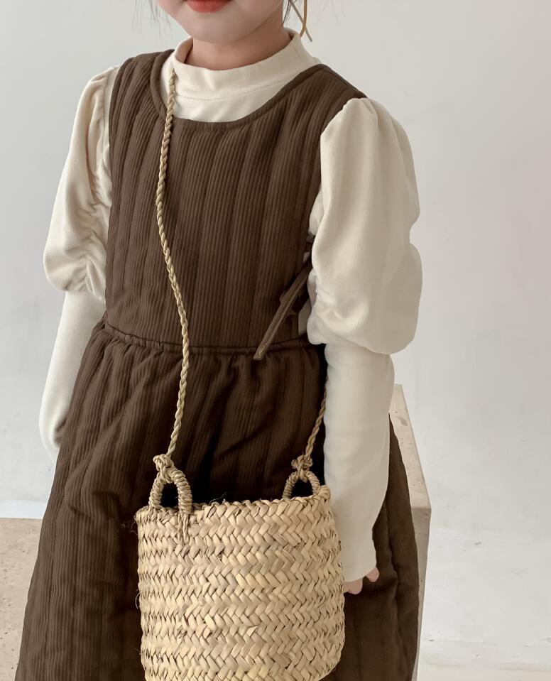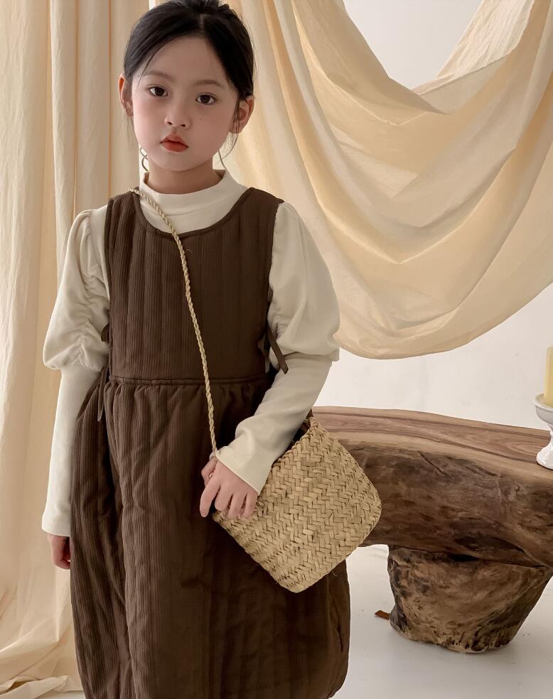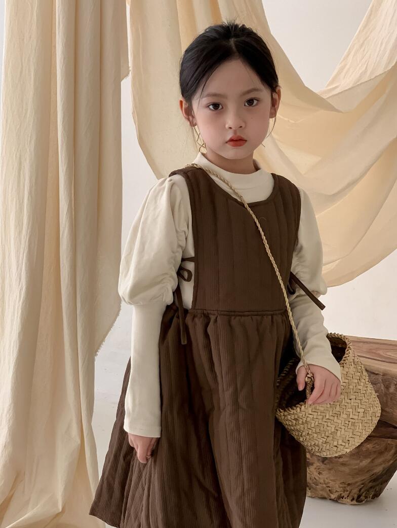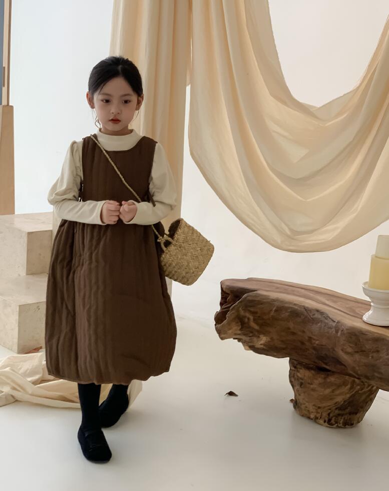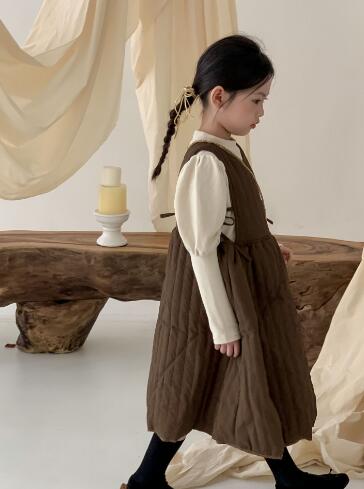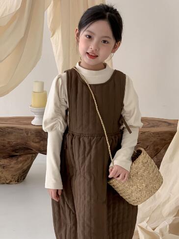 秋の新作キッズ服が登場! ナチュラルな風合いのガータースカートタイプのロングワンピースです。 落ち着いたブラウンカラーで上品な印象を演出。 90センチから150センチまでサイズ展開豊富で長くご愛用いただけます。