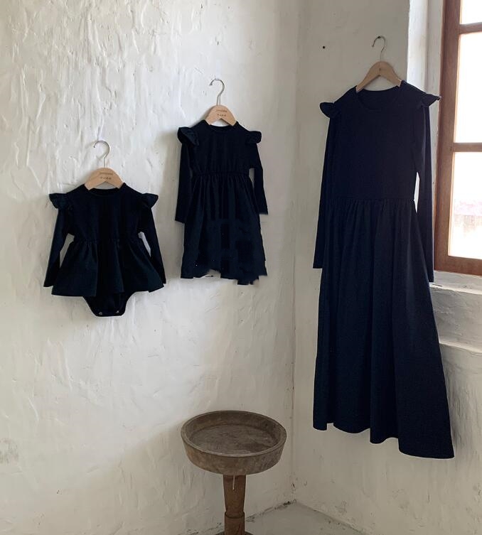秋冬にぴったりの親子でお揃いコーディネートが楽しめるキッズワンピースセット。