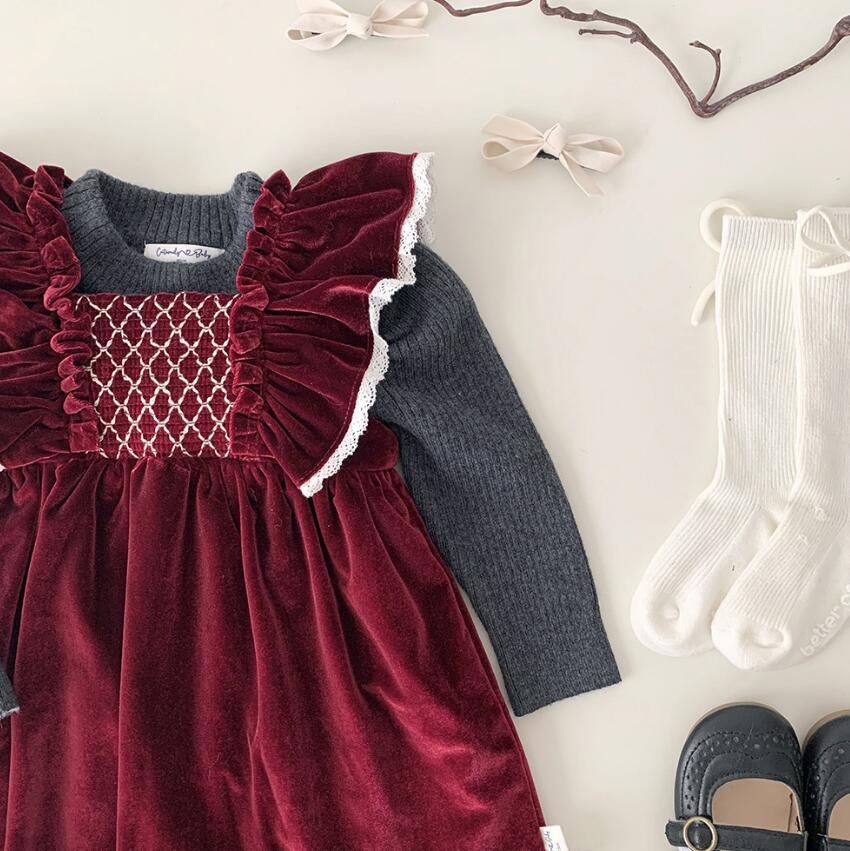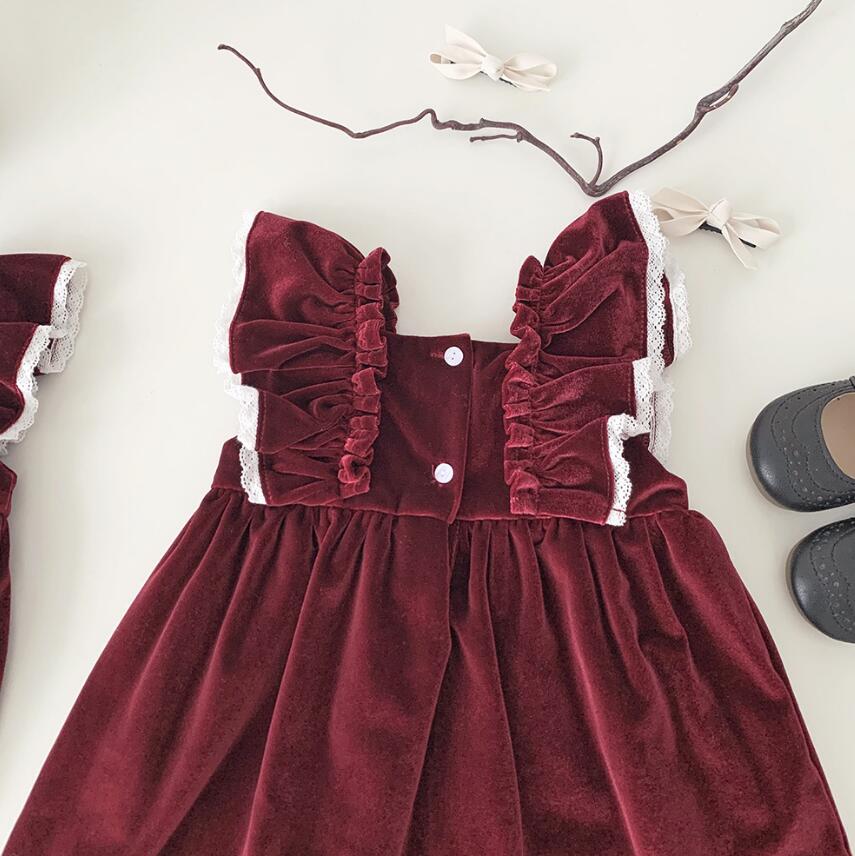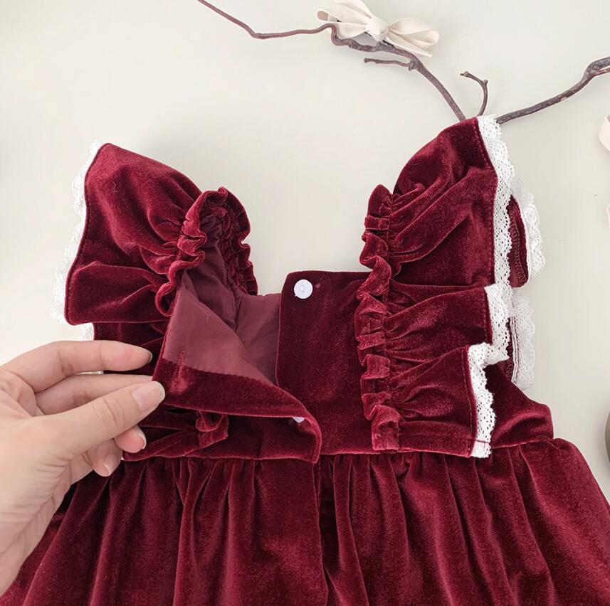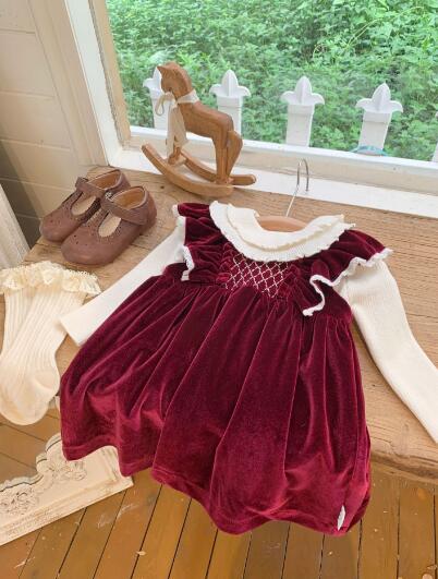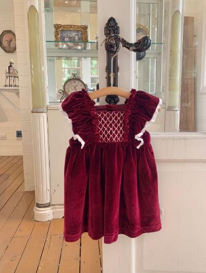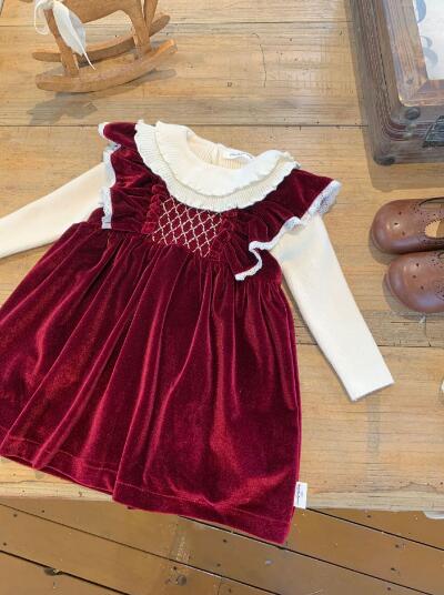 上品なベルベット調素材を使用したキッズ向けロングワンピースです。