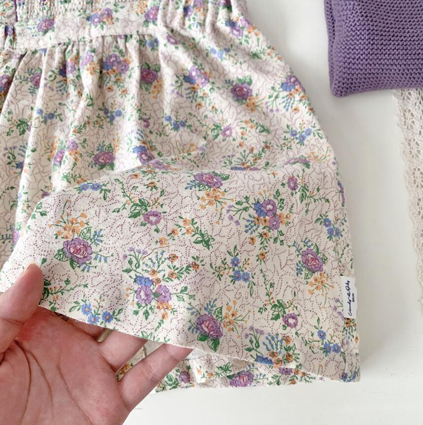 可愛らしい小花柄が魅力的なキッズ向けガーター風ワンピースです。