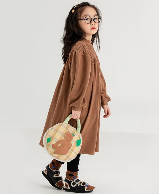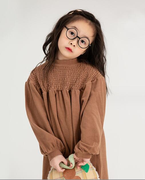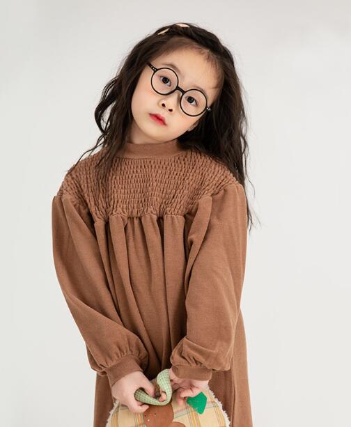 胸元の繊細なシャーリング加工と、ふんわりとしたシルエットが女の子らしい可愛さを演出します。