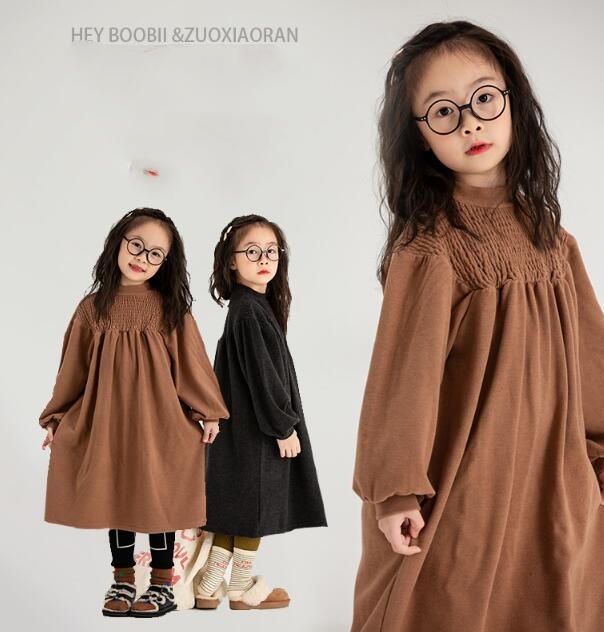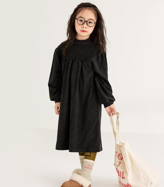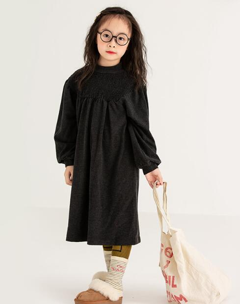 キッズ向けの上品なシャーリングデザインが特徴的なロングワンピースです。