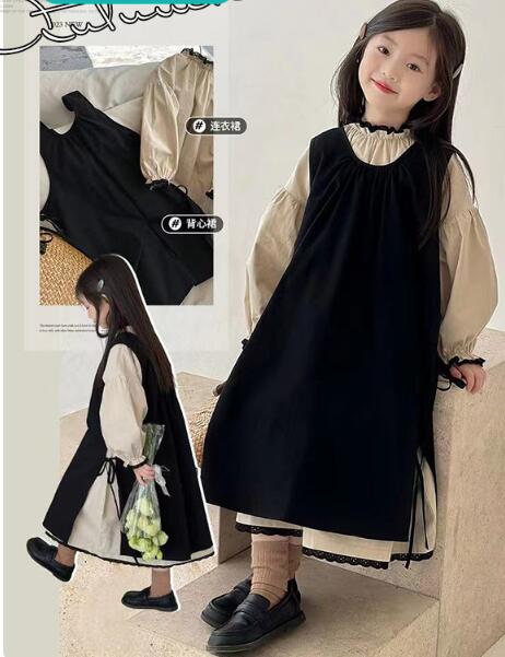 キッズ向けの上品なロングワンピースとブラウスの二点セット。