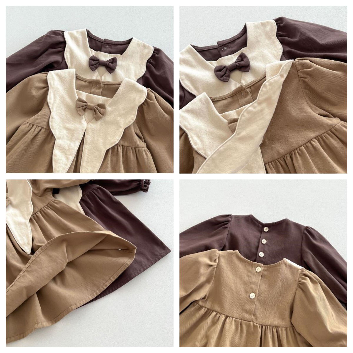 ベージュとブラウンの2色展開で、お出かけや発表会にも最適です。