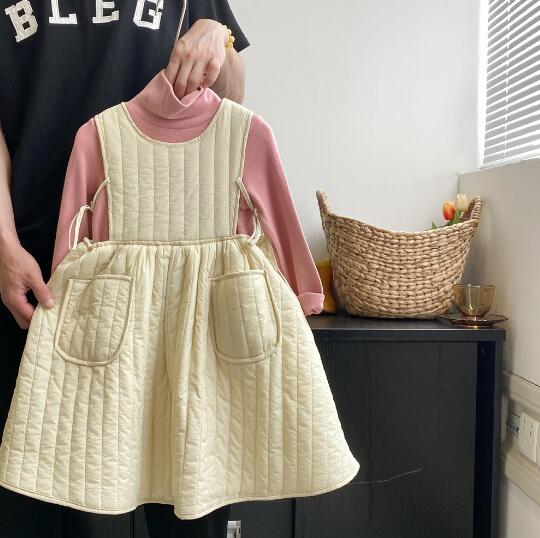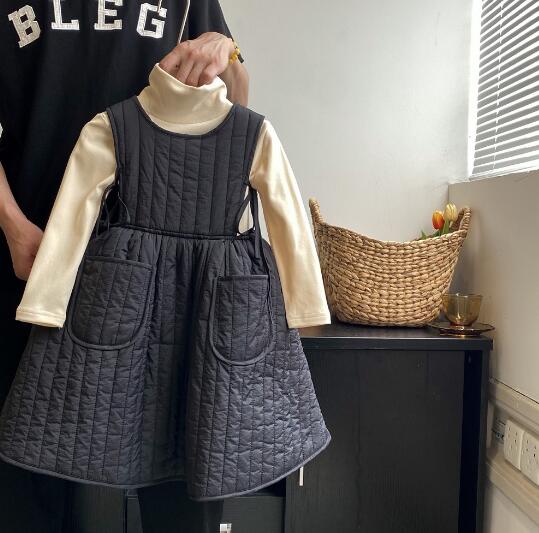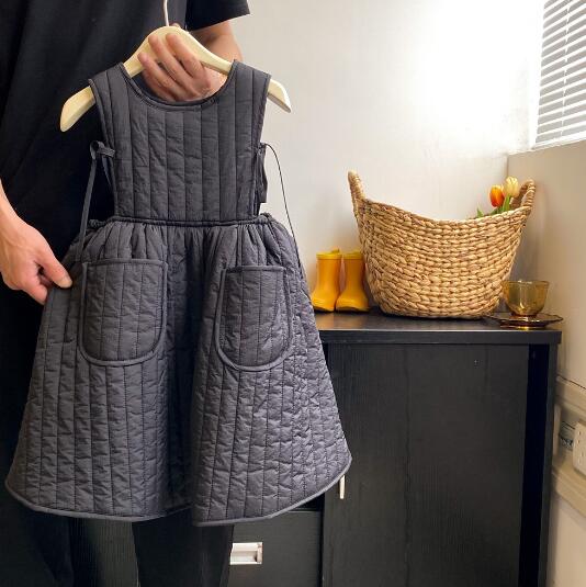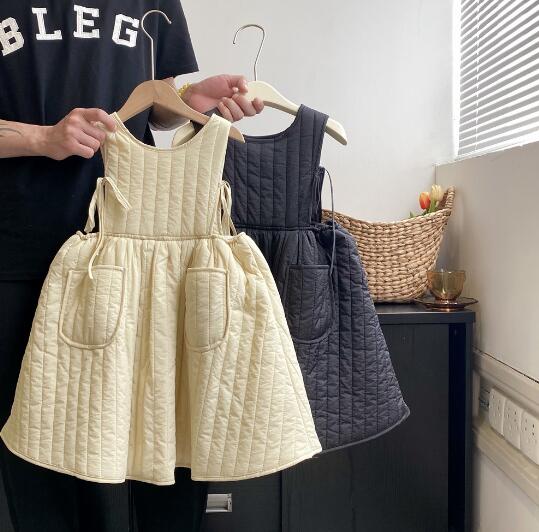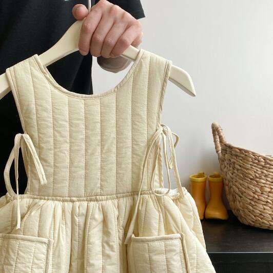 可愛いキルティング素材のキッズ用無袖ロングワンピースです。