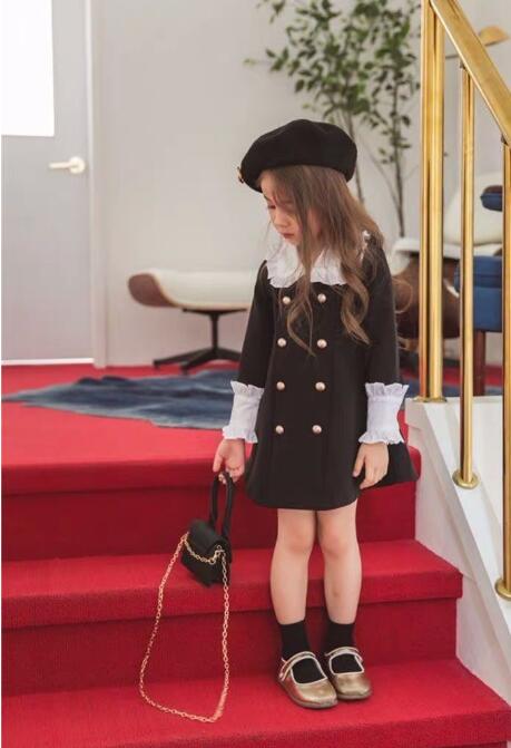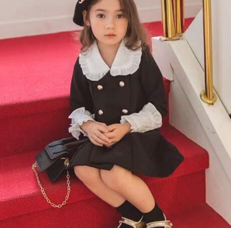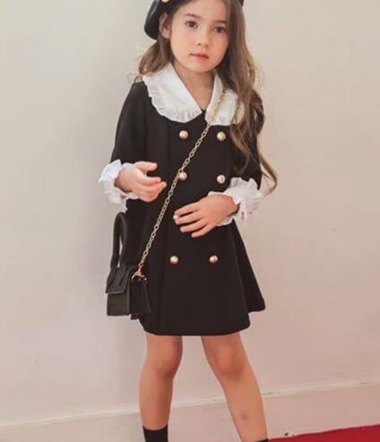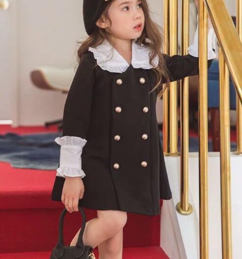 上品な白襟がアクセントのキッズ用ロングワンピースです。 親子でお揃いコーデが楽しめる人気デザイン。 金ボタンと袖口のフリルが可愛らしさをプラス。 サイズ90-140まで対応で長くご愛用いただけます。