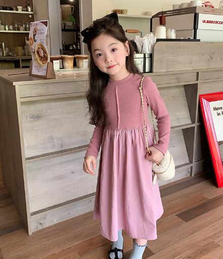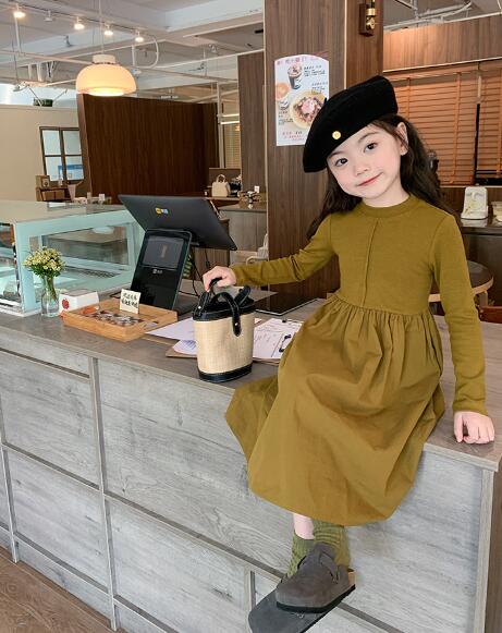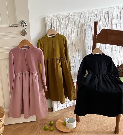 秋冬にぴったりのキッズ用長袖ロングワンピースです。